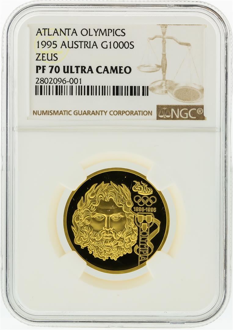 One 1995 NGC PF70 Ultra Cameo Austria 1000S Atlanta Olympics Zeus Gold Coin. NGC Certified.