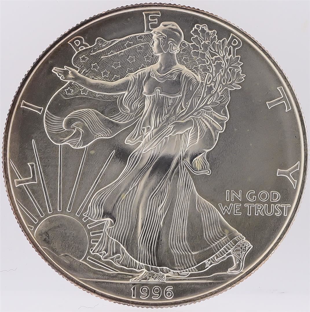 One 1996 American Silver Eagle Dollar Coin.