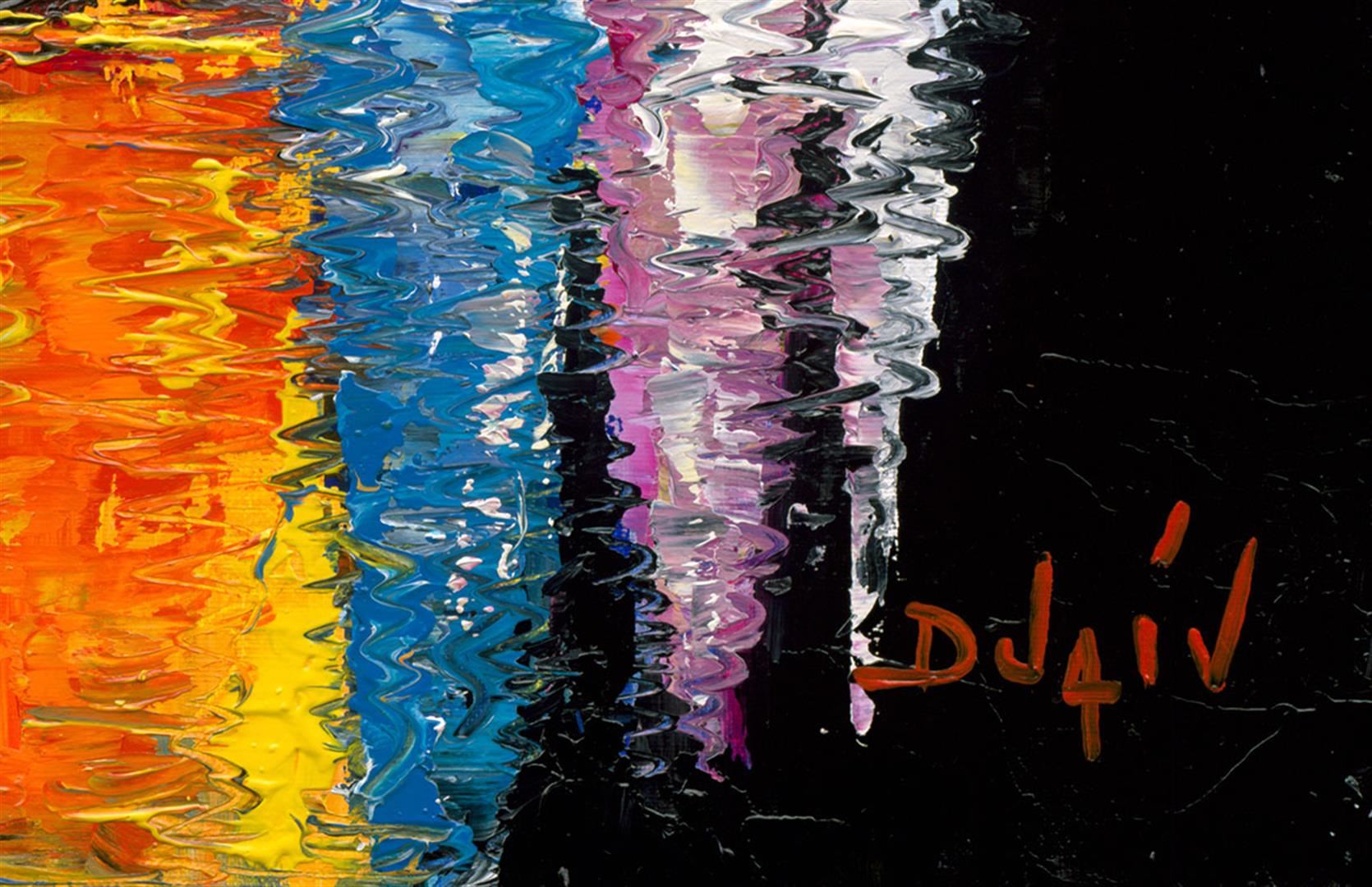 Superb limited edition embellished giclee on canvas. Hand signed by artist. This artwork comes framed in a silver floater ready to hang. Approximately 48x40 inches