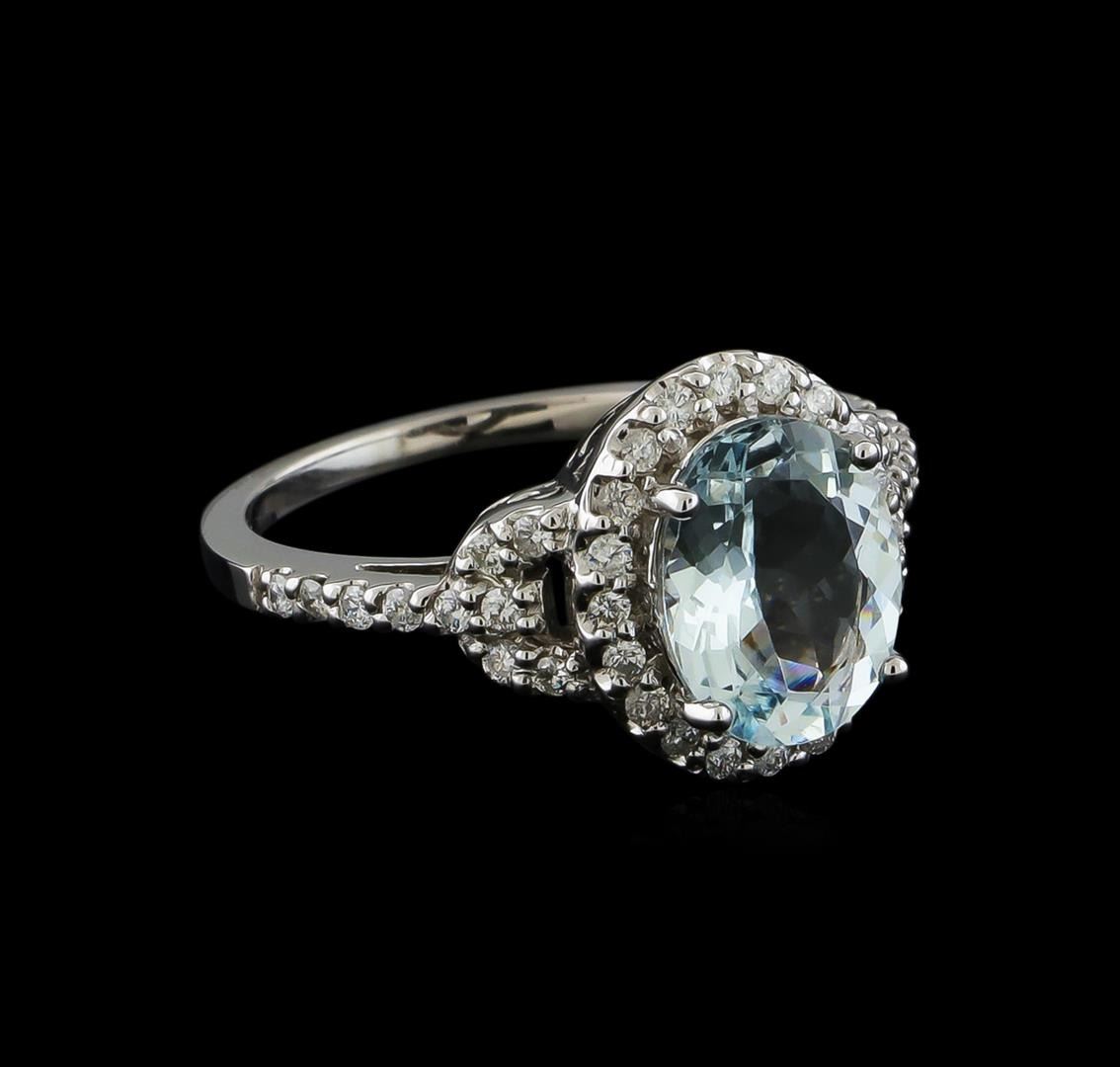 One Ring featuring: 14KT White Gold weighing 3.83 grams containing one Aquamarine center stone with a total weight of 2ct and Diamonds with a total weight of 0.38ct.
