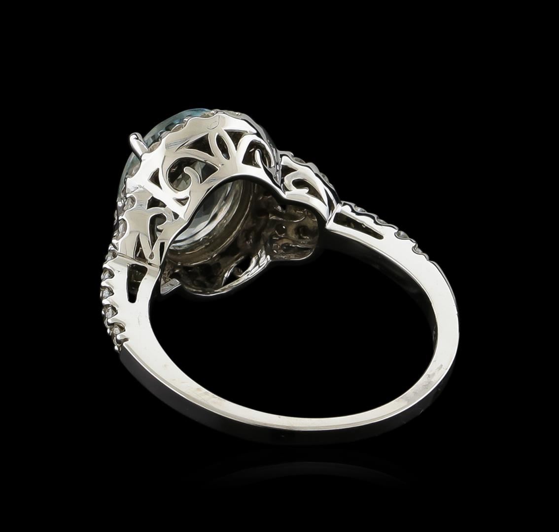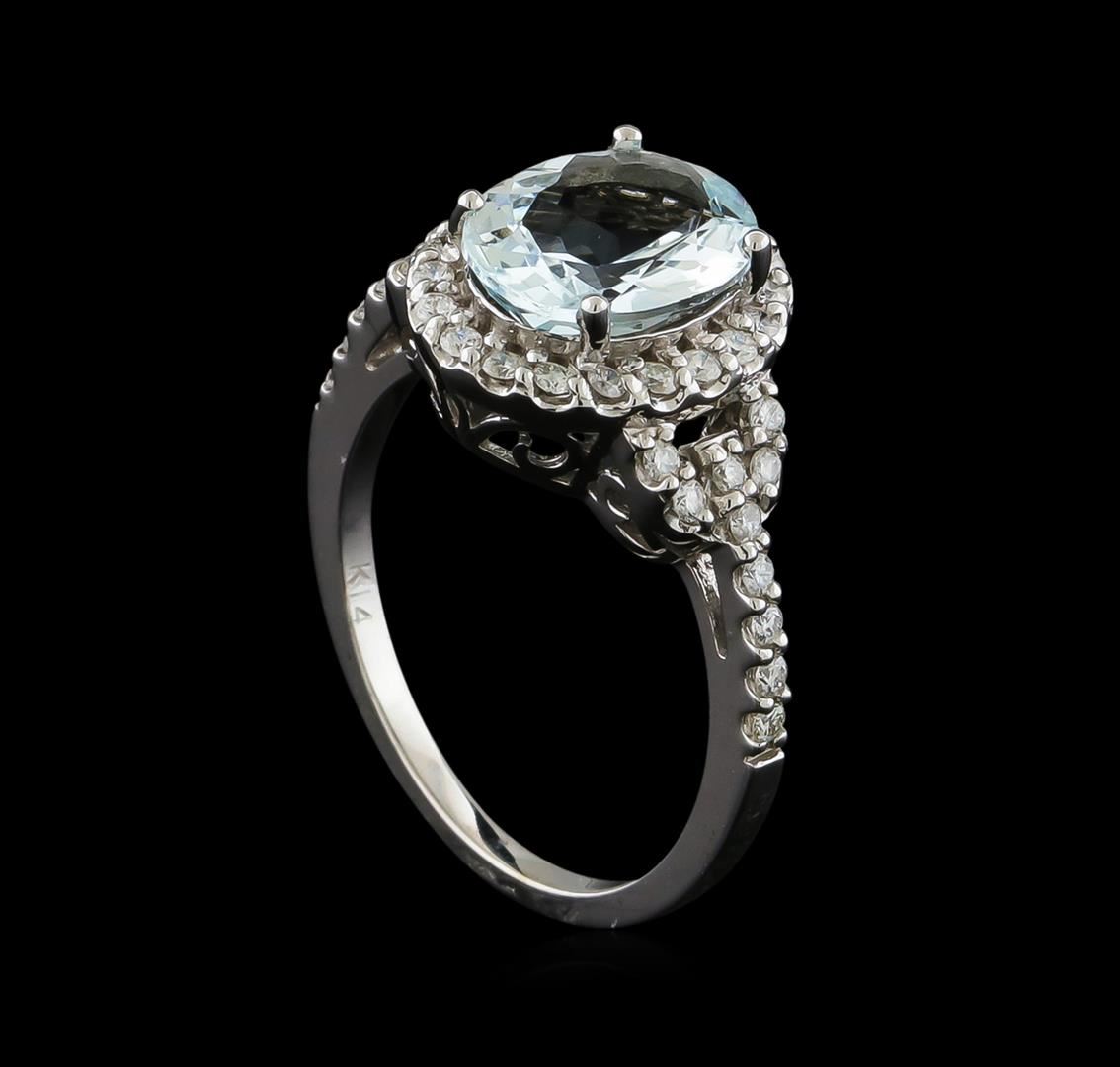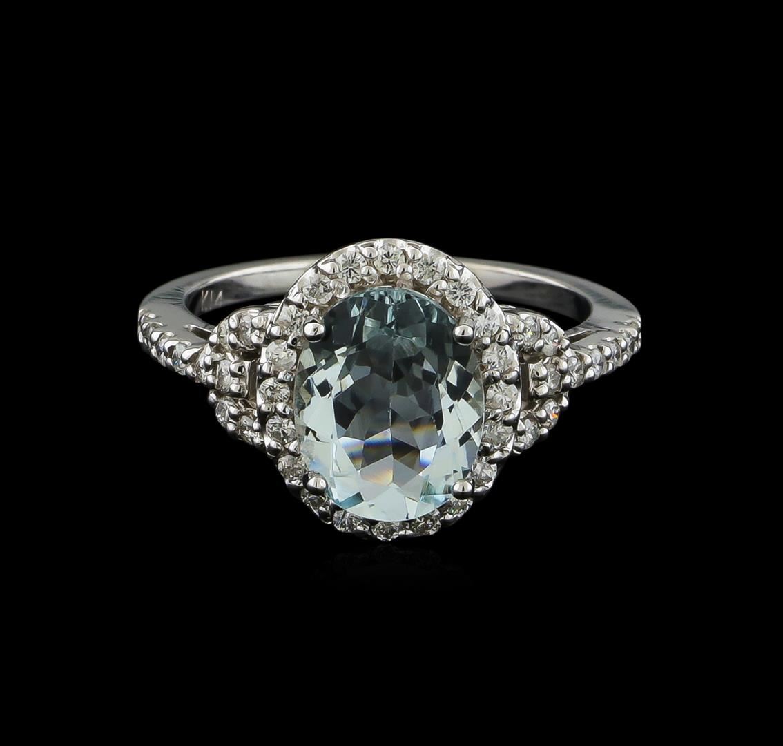 One Ring featuring: 14KT White Gold weighing 3.83 grams containing one Aquamarine center stone with a total weight of 2ct and Diamonds with a total weight of 0.38ct.