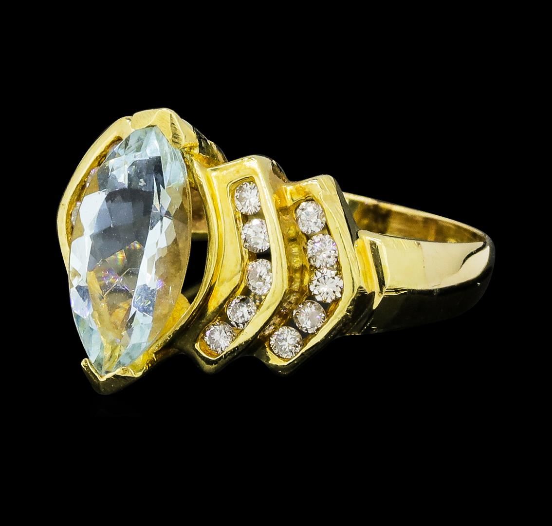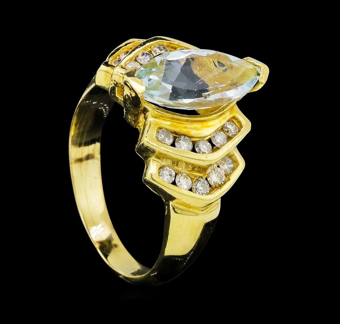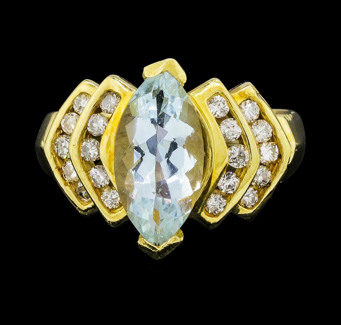 One lady's ring featuring: 14KT yellow gold weighing 4.6 grams containing one aquamarine weighing 2.00ct and diamonds weighing 0.50ctw.