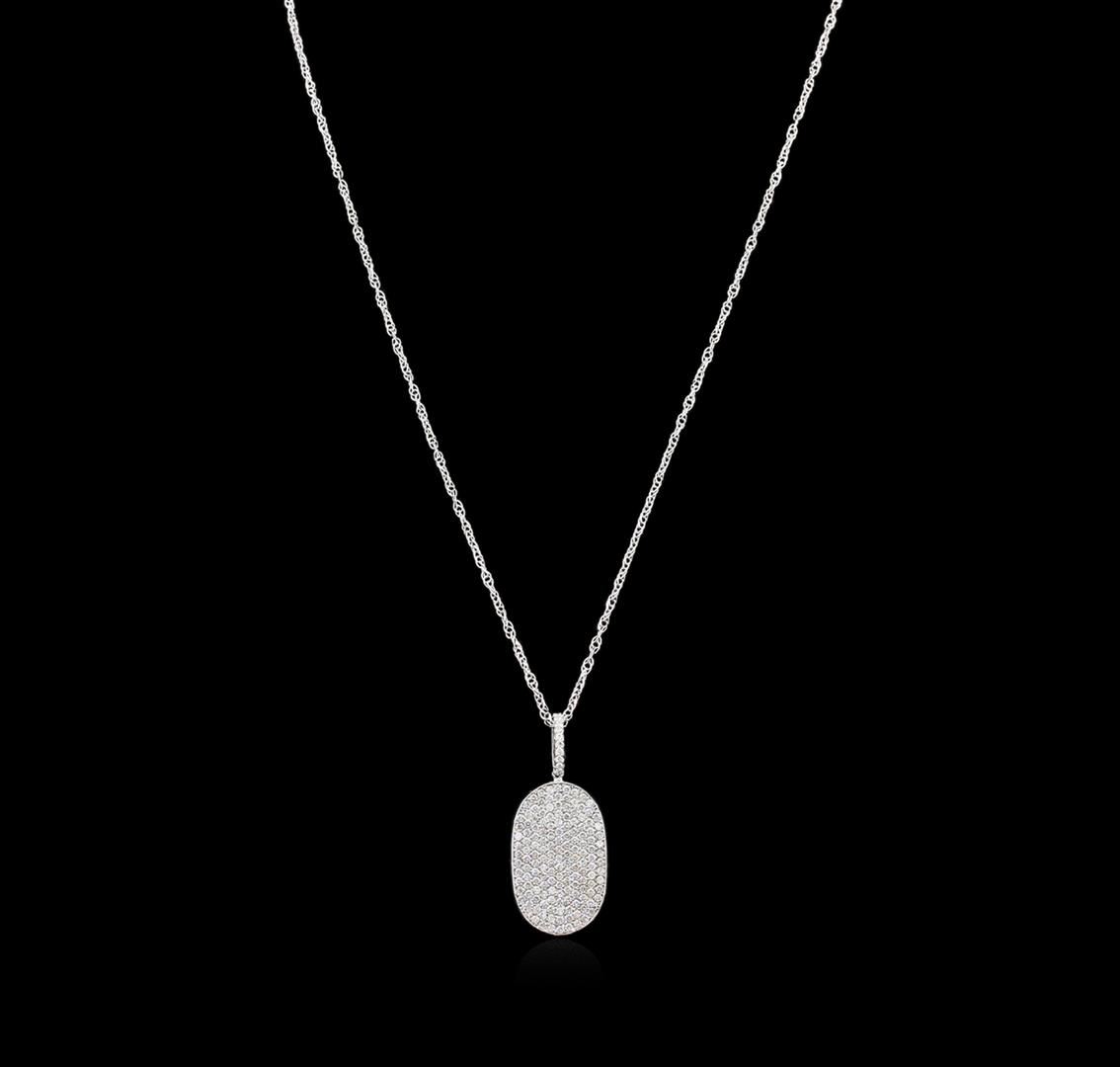 One electronically tested 14KT white gold lady's combination cast & assembled fashion pendant & chain 18.0" long, 1.3mm loose twisted rope chain with a spring ring clasp with a bright polish with milgrain detailing finish. Identified with markings of "K14". Condition is new, good workmanship. Containing: One Hundred Sixty-Four prong set round brilliant cut diamonds, measuring 1.50 - 1.40 x 0.94mm (depth est.) approximate total weight of 164 Stones = 2.00ct. Graded in the setting. Clarity: SI-1 to I-1. Color: H - I. Cut Good. Total Weight of Diamonds 2.00ct. Total Weight of Pendant & Chain 6.40gm. GAS Appraised at $6,120.00.