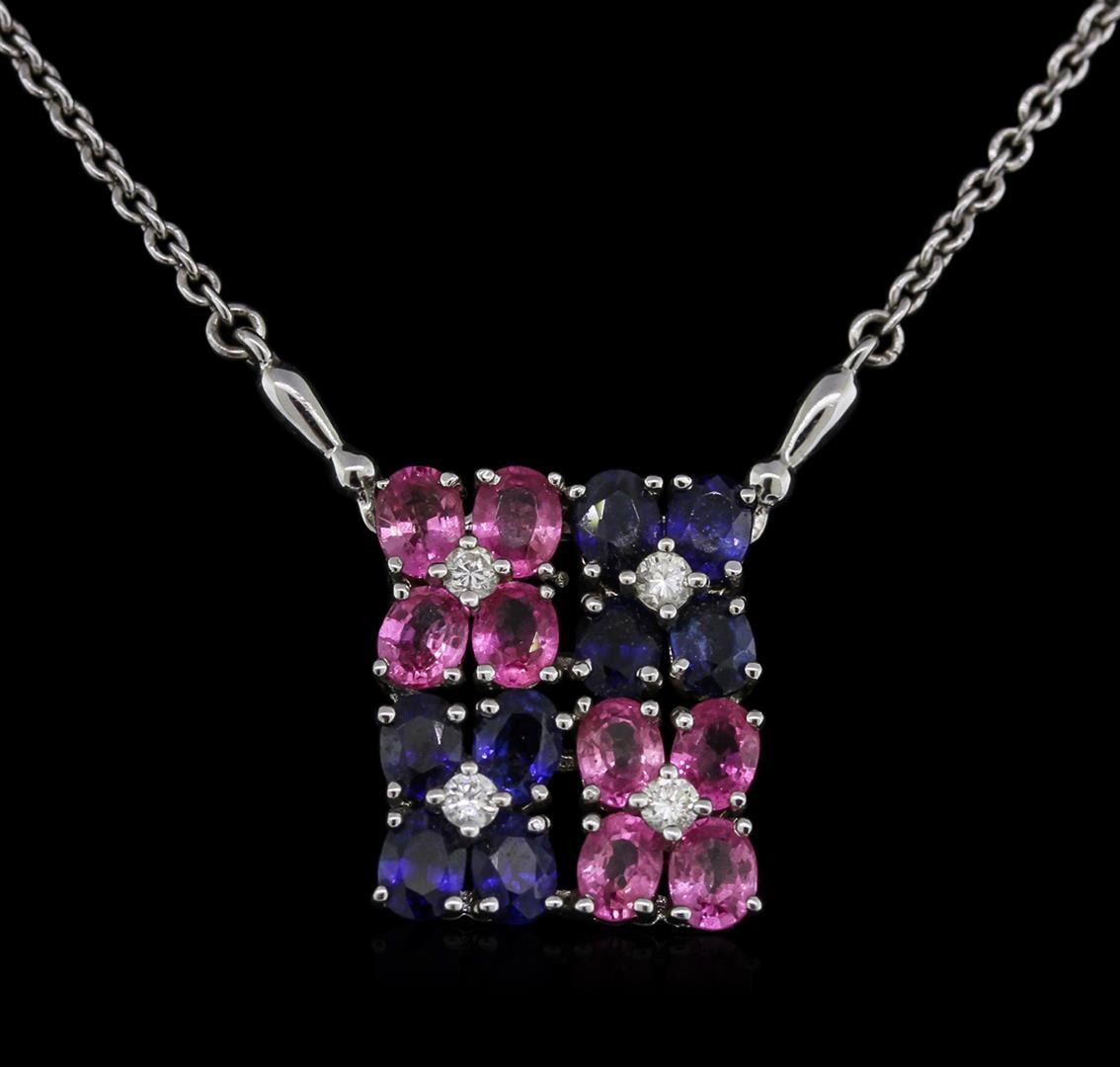 One necklace featuring: 14KT white gold weighing 7.50 grams containing pink and blue sapphires with a total weight of 2.00ct and diamonds with a total weight of 0.07ct.