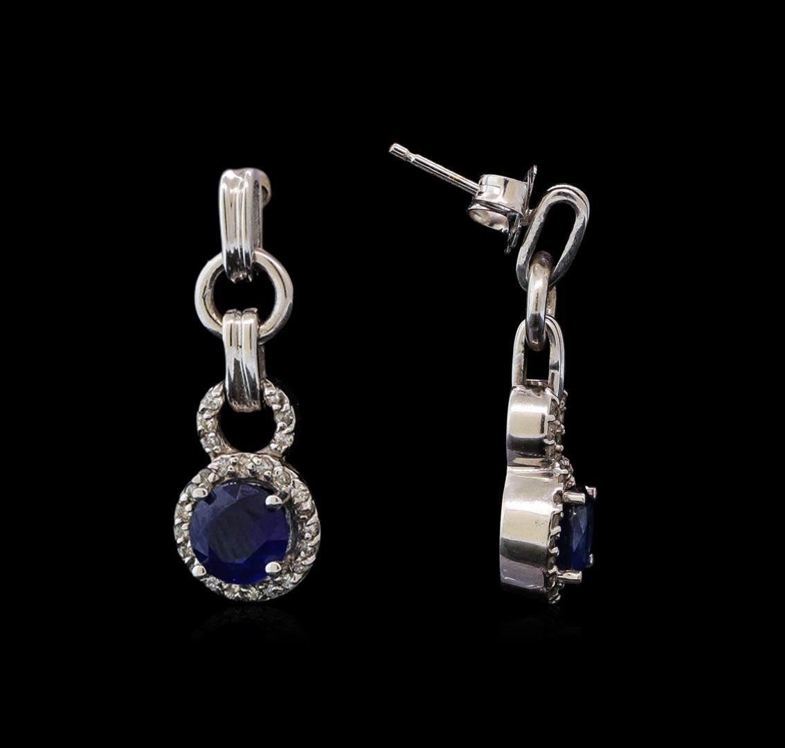 One pair of earrings featuring: 14KT white gold containing Sapphires with a total weight of 2.00ct and diamonds with a total weight of 0.25ctw.