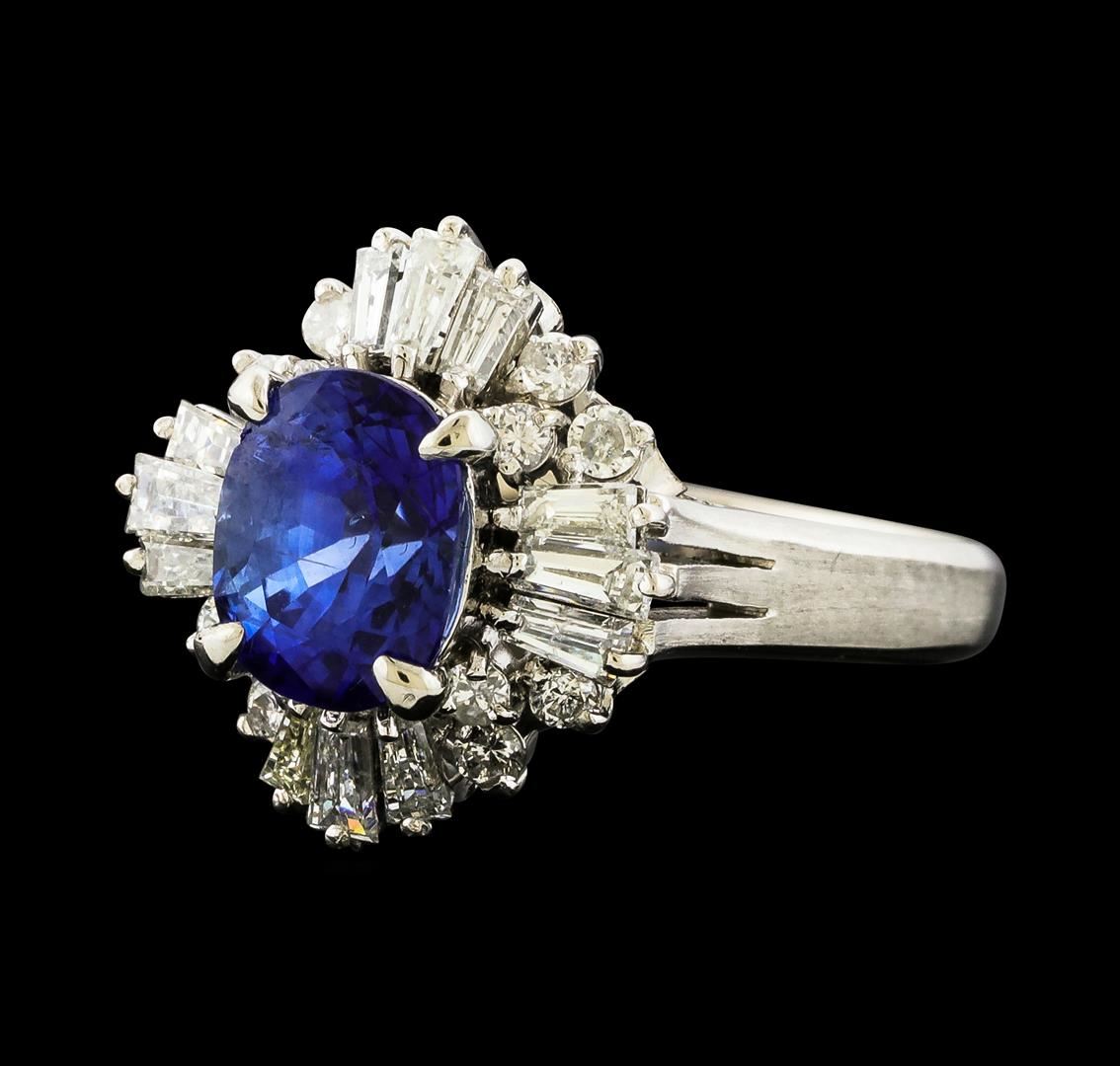 One ring featuring: Platinum containing Sapphire with a total weight of 2.00ct and Diamonds with a total weight of 0.80ct. Total Weight of Ring: 6.8 grams.