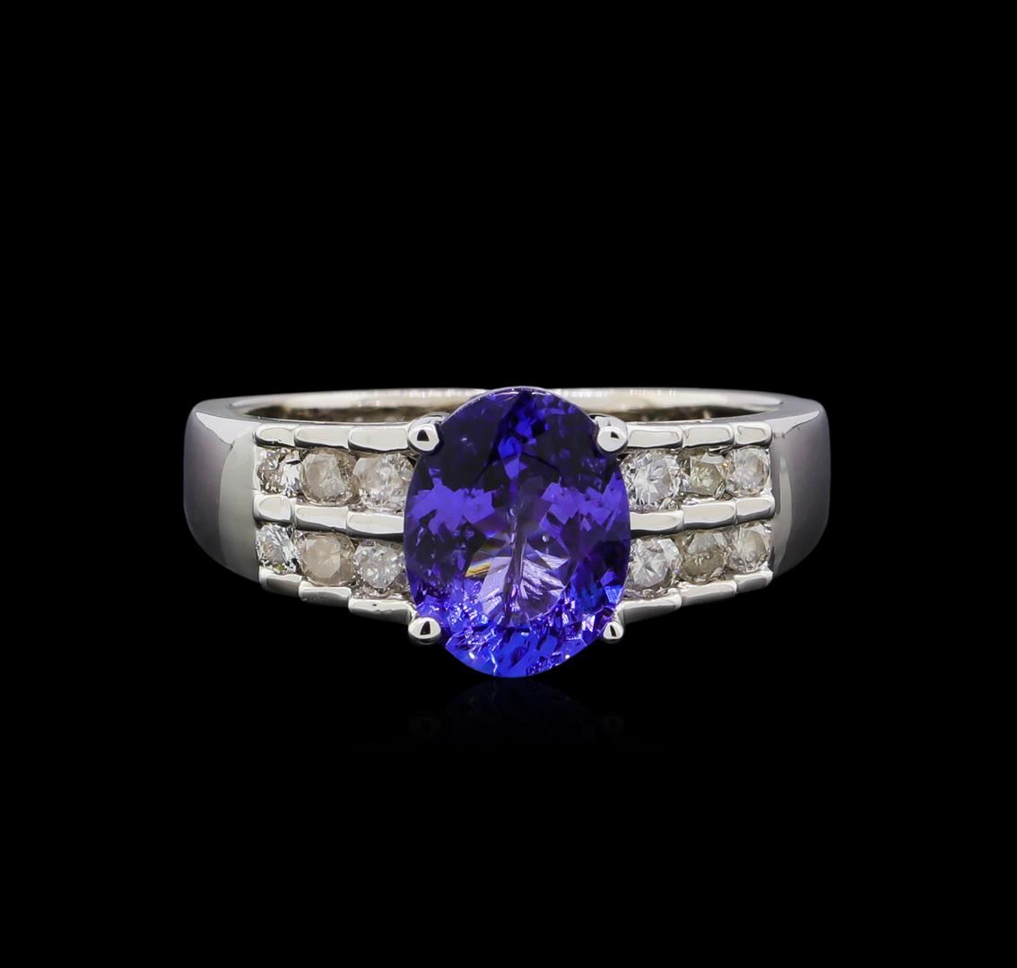 One electronically tested 14KT white gold ladies cast tanzanite and diamond ring with a bright polish finish. The featured tanzanite is supported by tiered diamond set shoulders, completed by a one and one-half millimeter wide band. Trademark is Orianne. Identified with markings of "14K". Condition is new, good workmanship. Containing: One prong set oval mixed cut natural tanzanite approximate weight of 2.00ct., clarity is slightly included, type I, medium dark, very slightly grayish, bluish violet color, (GIA bV 6/3), cut is good. Transmitting light with a minimum of distortion, transparent. Naturally occurring internal & external characteristics are present. Graded in the setting. Tanzanite is a very rare gemstone that is only found in the country of Tanzania. Originally discovered in 1967. Tiffany & Company, named the stone Tanzanite. It is found in the Usumburu Mountains that border the Umba Valley of northern Tanzania. Tanzanite occurs in gray, brown, violet, blue, reddish-purple, & green. The gem is interesting because of its exceptional pleochroism. Rotated in different directions a tanzanite will exhibit multiple changes of color. Tanzanite has a low tolerance to ultrasonic cleaning, and should not be cleaned using this method. Twelve channel set round brilliant cut diamonds approximate total weight of 12 Stones = 0.39ct. Graded in the setting. Clarity: I-2 to I-3. Color: G - I. Total Weight of Colored Stones 2.00ct. Total Weight of Diamonds 0.39ct. Total Weight of Ring 4.23gm. AIG Appraised at $5,215.00.
