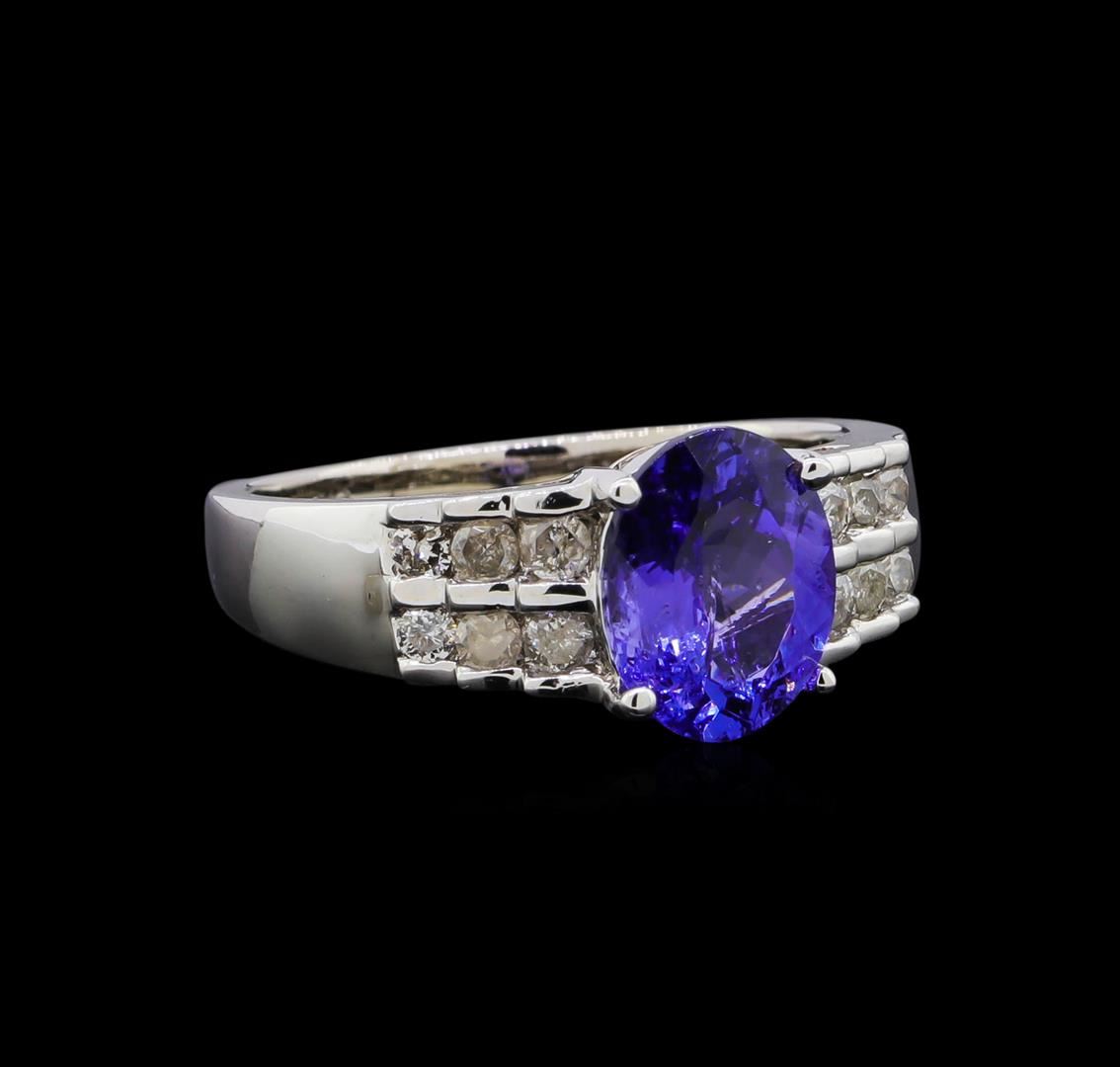 One electronically tested 14KT white gold ladies cast tanzanite and diamond ring with a bright polish finish. The featured tanzanite is supported by tiered diamond set shoulders, completed by a one and one-half millimeter wide band. Trademark is Orianne. Identified with markings of "14K". Condition is new, good workmanship. Containing: One prong set oval mixed cut natural tanzanite approximate weight of 2.00ct., clarity is slightly included, type I, medium dark, very slightly grayish, bluish violet color, (GIA bV 6/3), cut is good. Transmitting light with a minimum of distortion, transparent. Naturally occurring internal & external characteristics are present. Graded in the setting. Tanzanite is a very rare gemstone that is only found in the country of Tanzania. Originally discovered in 1967. Tiffany & Company, named the stone Tanzanite. It is found in the Usumburu Mountains that border the Umba Valley of northern Tanzania. Tanzanite occurs in gray, brown, violet, blue, reddish-purple, & green. The gem is interesting because of its exceptional pleochroism. Rotated in different directions a tanzanite will exhibit multiple changes of color. Tanzanite has a low tolerance to ultrasonic cleaning, and should not be cleaned using this method. Twelve channel set round brilliant cut diamonds approximate total weight of 12 Stones = 0.39ct. Graded in the setting. Clarity: I-2 to I-3. Color: G - I. Total Weight of Colored Stones 2.00ct. Total Weight of Diamonds 0.39ct. Total Weight of Ring 4.23gm. AIG Appraised at $5,215.00.
