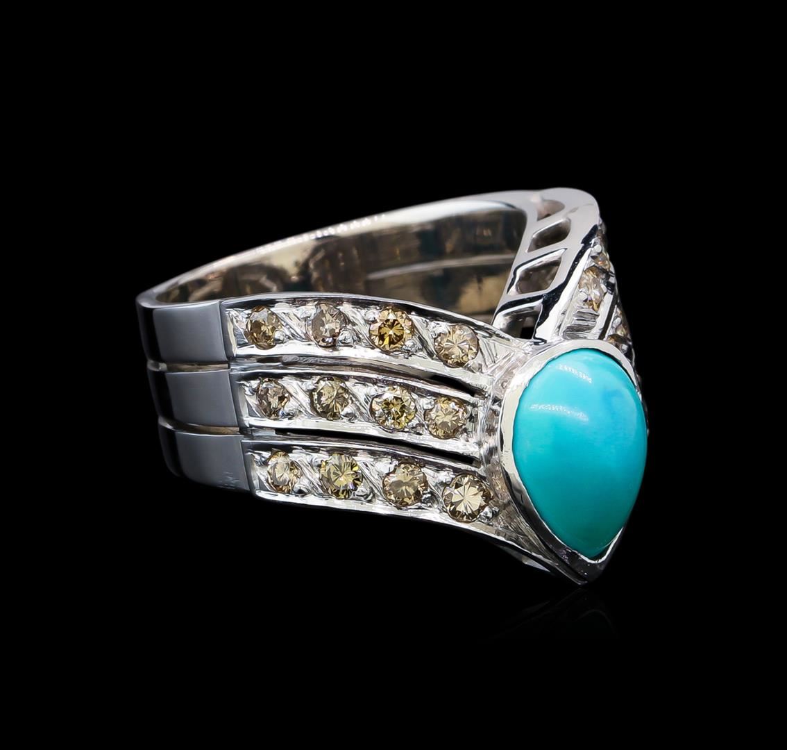 One ring featuring: 18KT white gold weighing 9.39 grams containing turquoise weighing a total of 2.00ct and diamonds weighing 1.00ctw.