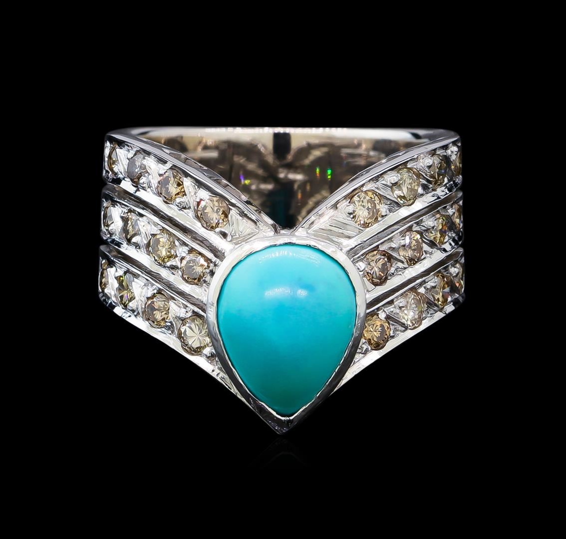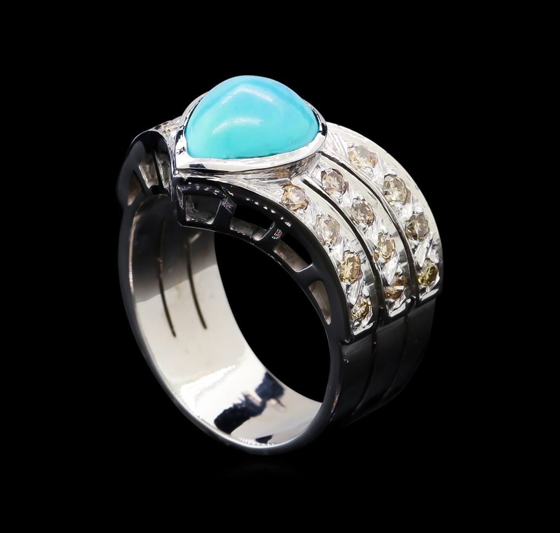 One ring featuring: 18KT white gold weighing 9.39 grams containing turquoise weighing a total of 2.00ct and diamonds weighing 1.00ctw.