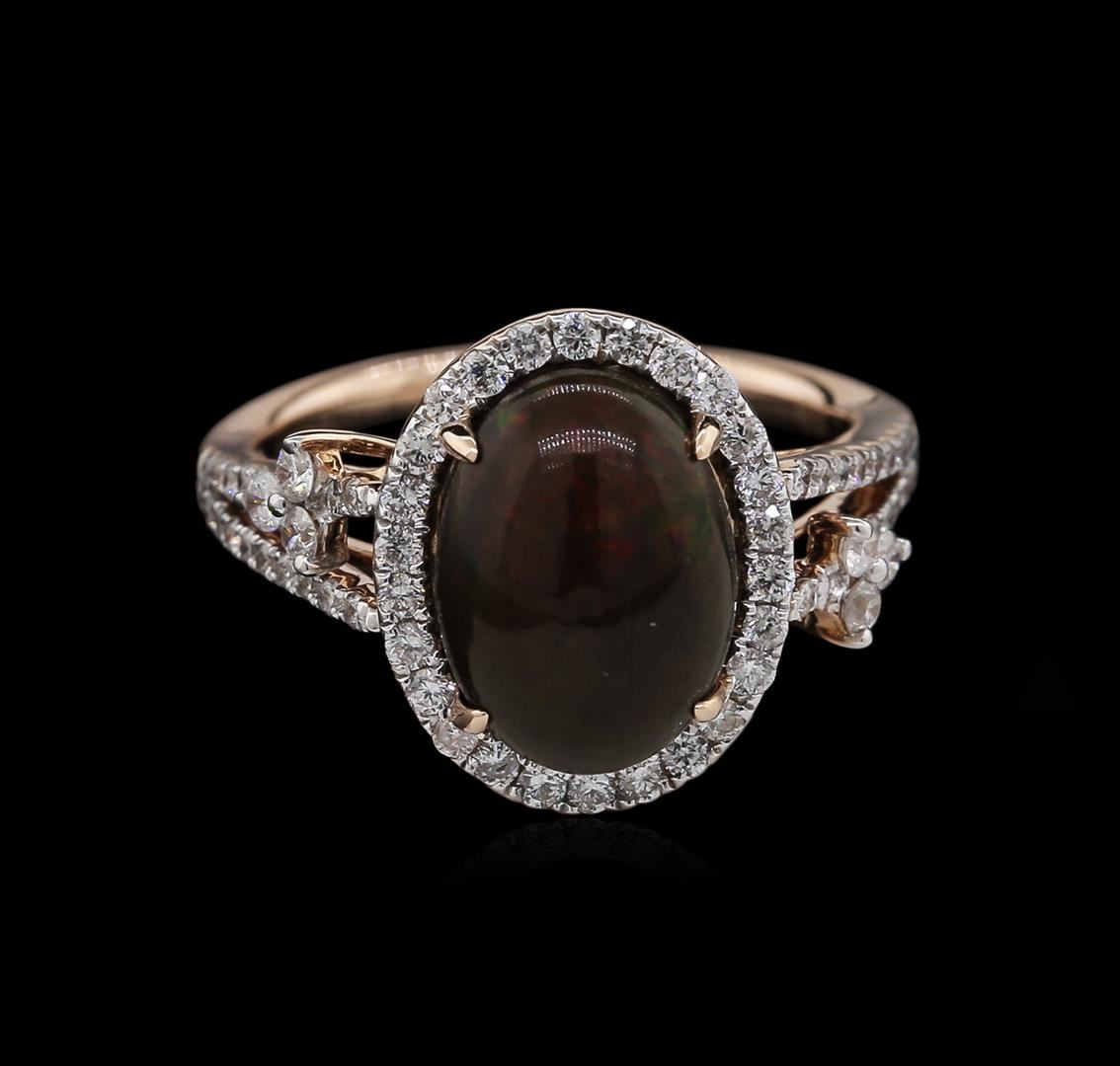 One ring featuring: 14KT rose gold weighing 3.55 grams containing one opal with a total weight of 2.00ct and diamonds with a total weight of 0.55ct.