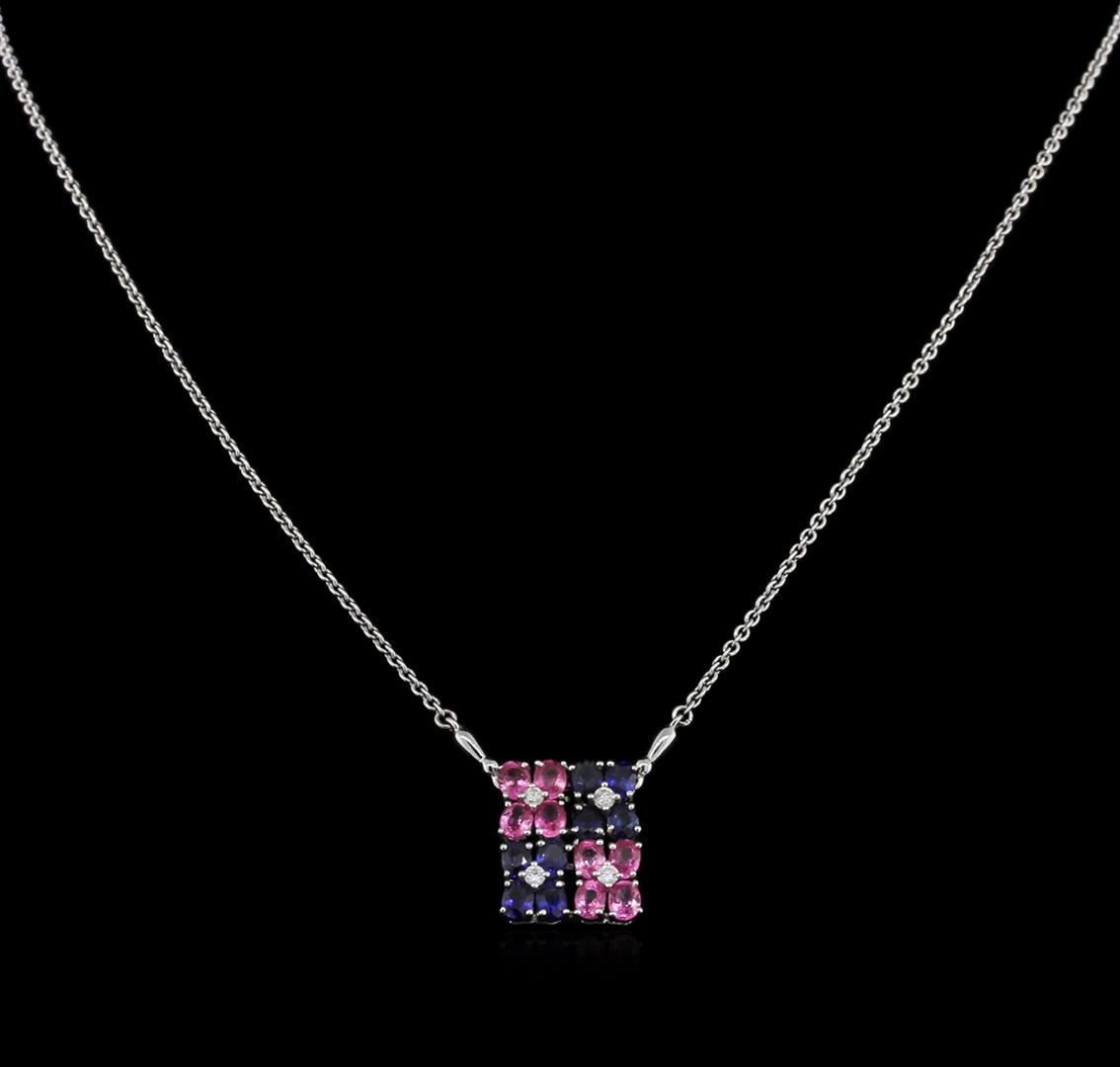 One necklace featuring: 14KT white gold weighing 7.50 grams containing pink and blue sapphires with a total weight of 2.00ct and diamonds with a total weight of 0.07ct.