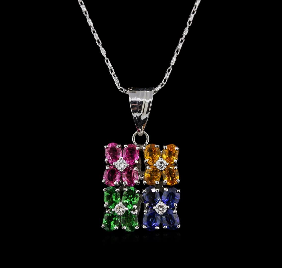 One pendant with chain featuring: 14KT white gold weighing 4.10 grams containing multi-colored sapphires with a total weight of 2.00ct and diamonds with a total weight of 0.06ct.