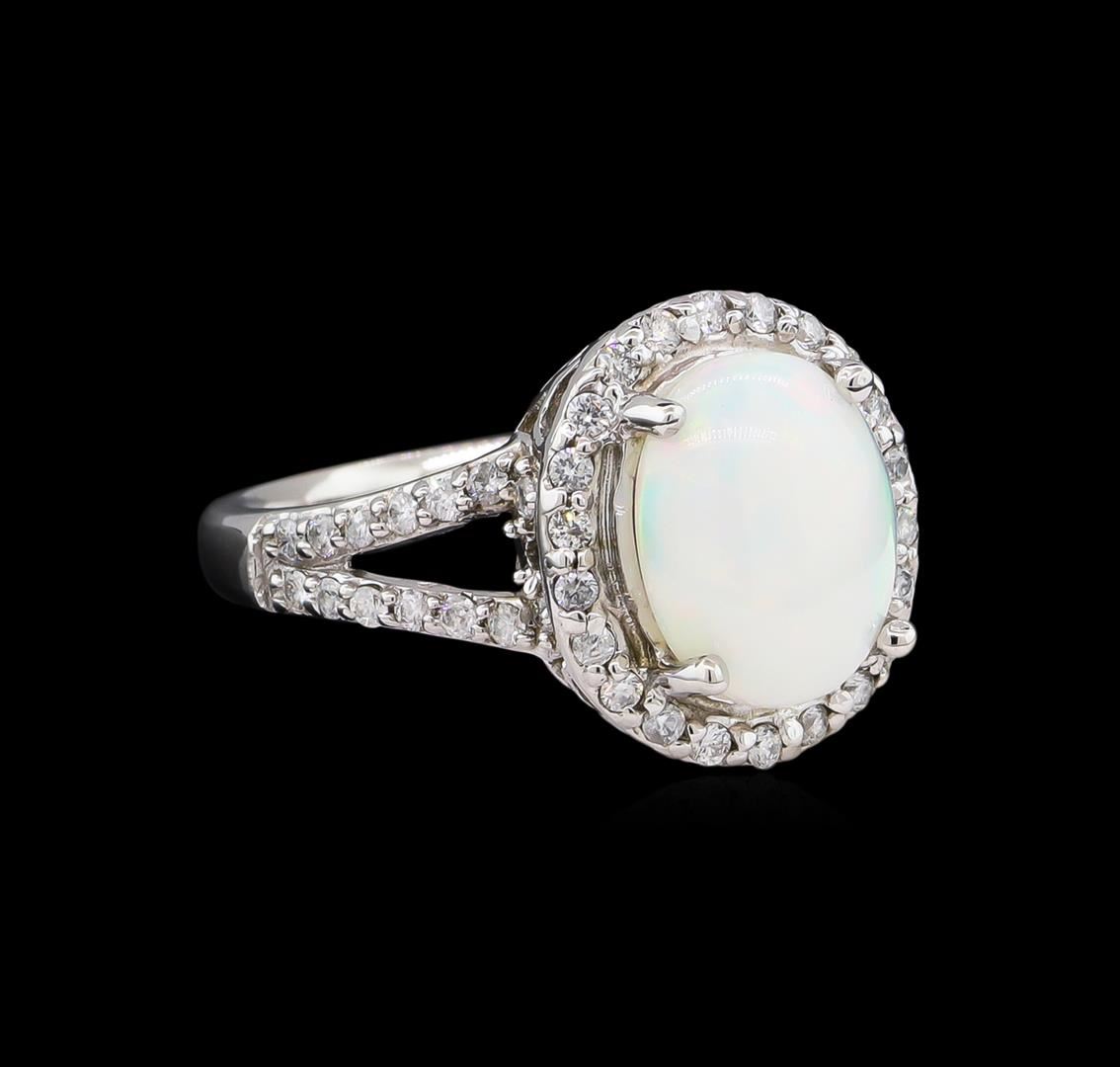 One ring featuring: 14KT white gold weighing 4.70 grams containing one opal with a total weight of 2.03ct and side diamonds with a total weight of 0.48ct.