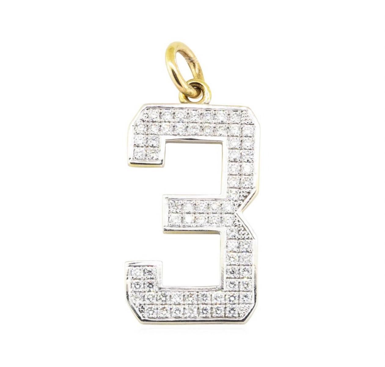 One "3" pendant measuring approximately 31.5mm in length featuring: 14KT yellow and white gold weighing 7.5 grams containing 68 diamonds weighing 2.04ctw.