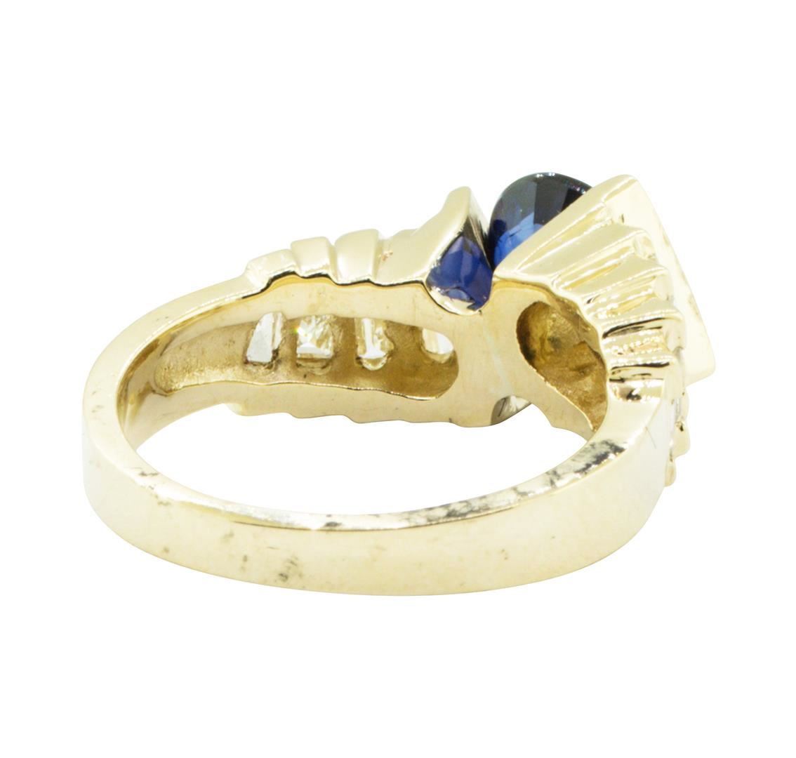 One electronically tested 14KT yellow gold lady's cast fashion bypass ring with a step motif with a bright polish finish. The featured lady's ring has a shank measuring 2.6 millimeters in width. Identified with markings of '14K'. Condition is new, good wo