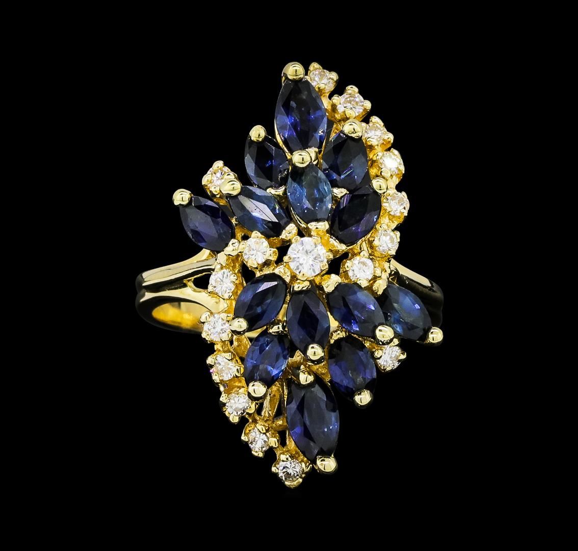 One lady's ring featuring: 14KT yellow gold weighing 5.9 grams containing sapphires weighing 2.05ctw and diamonds weighing 0.35ctw.