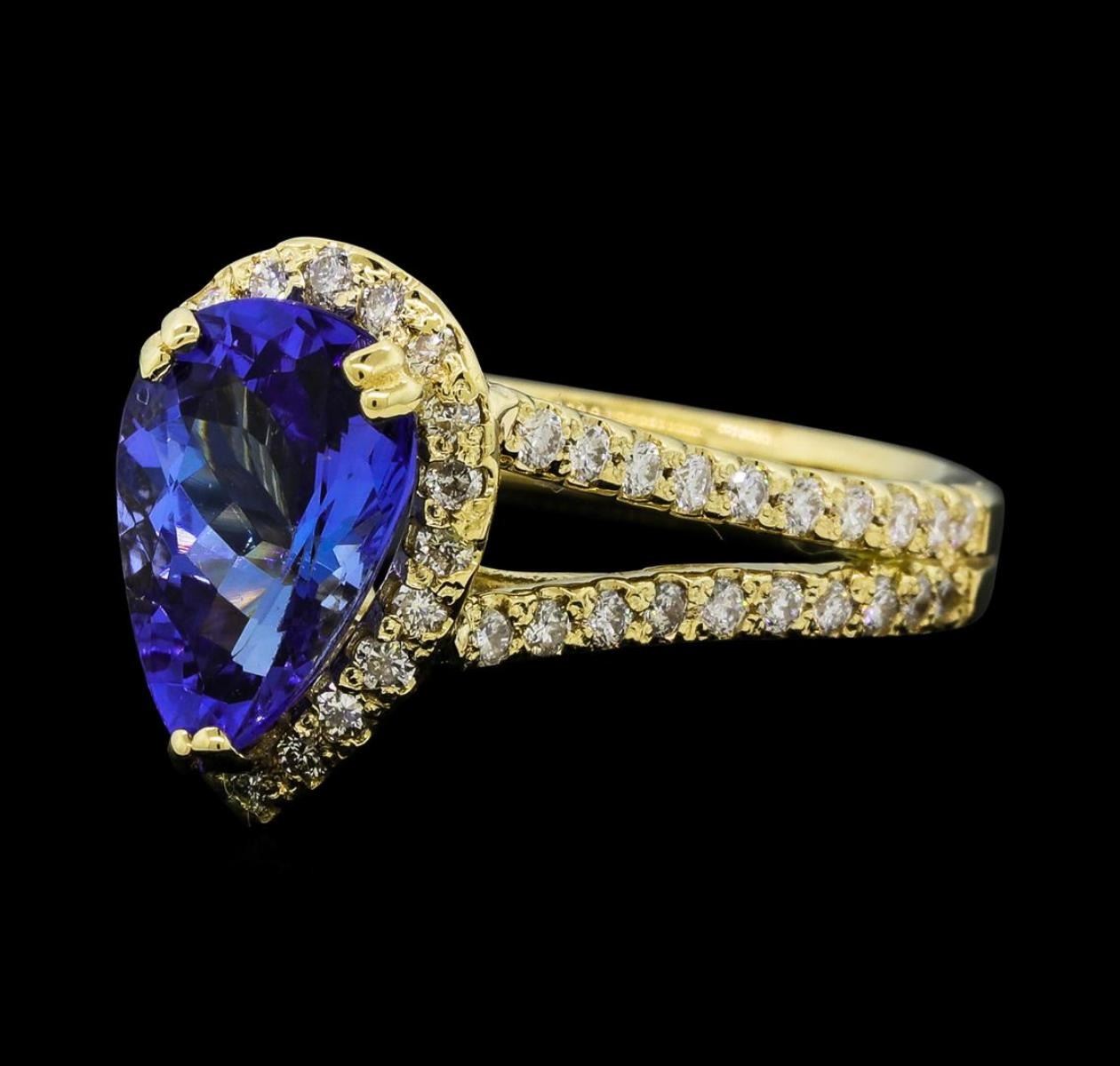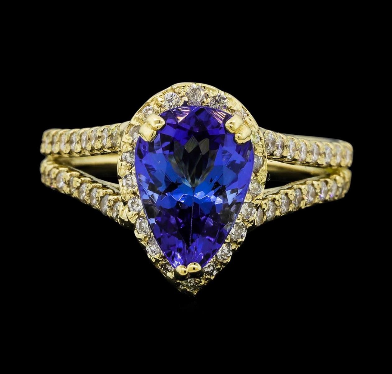 One Tanzanite and Diamond Ring including: 14KT Yellow Gold weighing a total of 4.30 grams, Tanzanite weighing a total of 2.05ct, and 60 Diamonds weighing a total of 0.50 ctw.