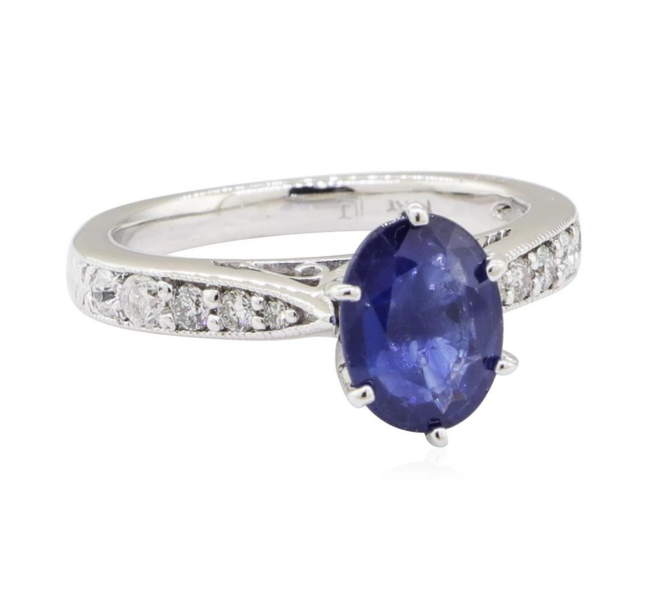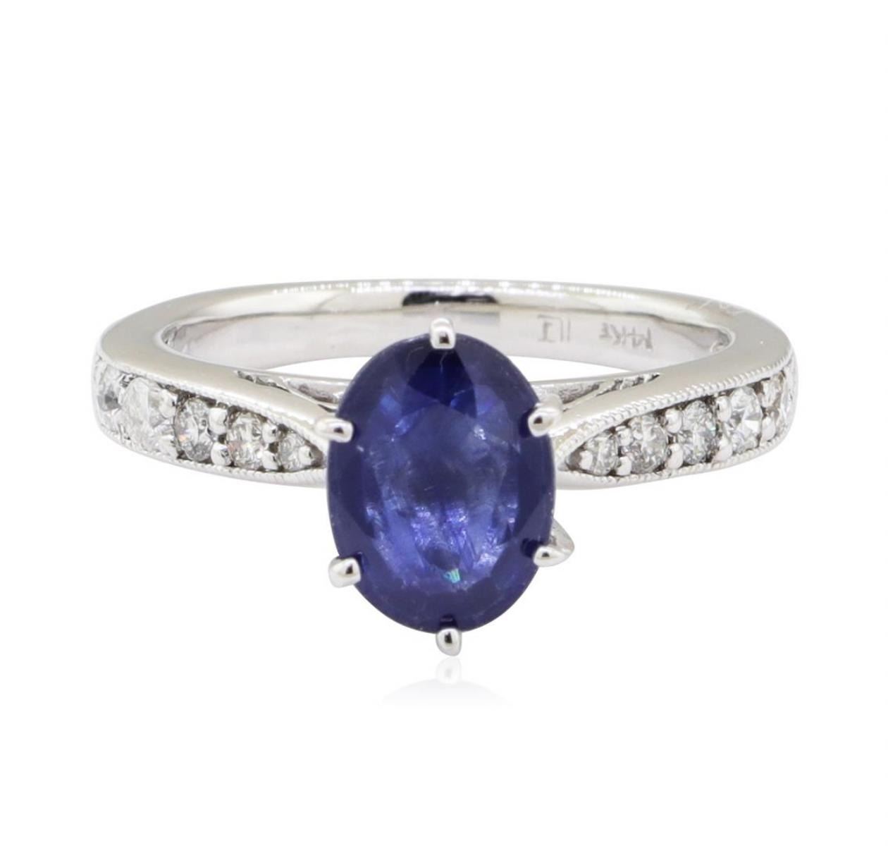 One ring featuring: 14KT white gold weighing 3.4 grams containing one sapphire weighing 1.56ct and diamonds weighing 0.50 ctw.