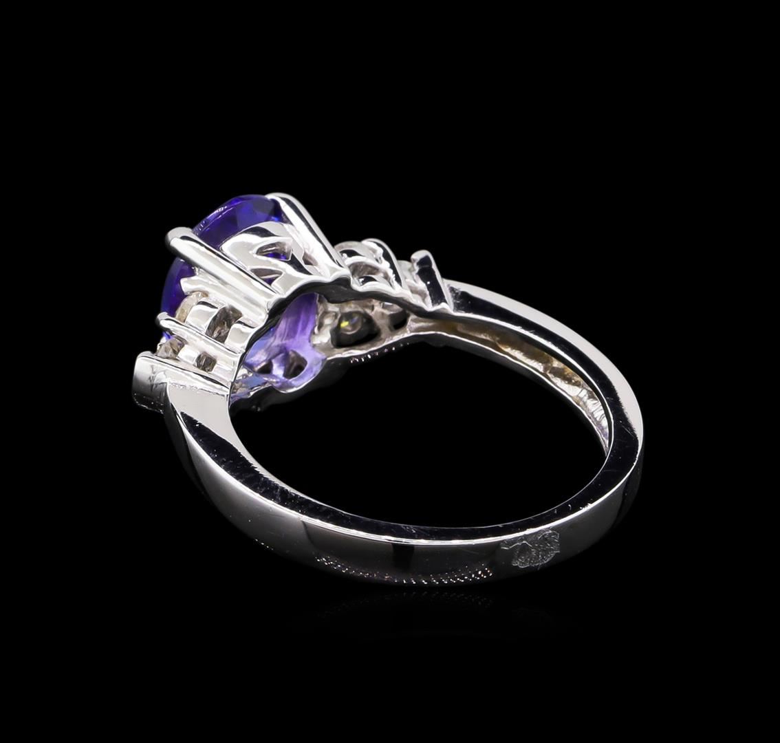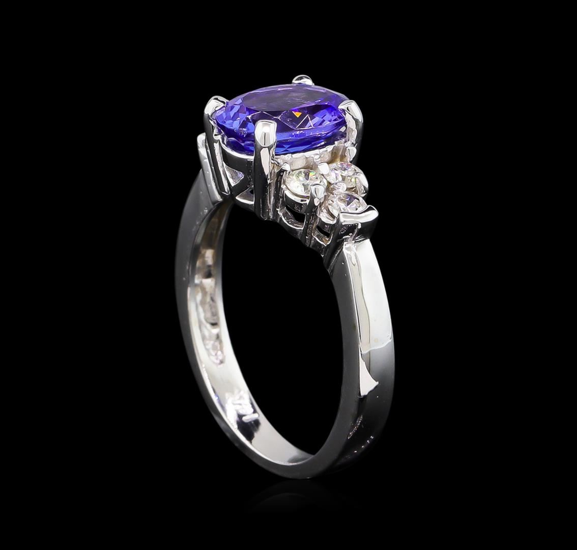 One ring featuring: 14KT white gold weighing 4.38 grams containing one tanzanite with a total weight of 2.06ct and side diamonds with a total weight of 0.37ct.
