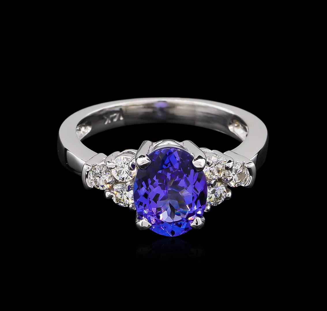 One ring featuring: 14KT white gold weighing 4.38 grams containing one tanzanite with a total weight of 2.06ct and side diamonds with a total weight of 0.37ct.
