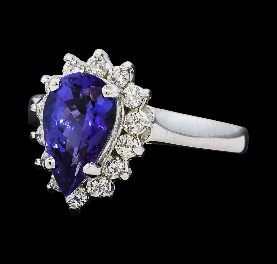One Tanzanite and Diamond Ring including: 14KT White Gold weighing a total of 4.41 grams, Tanzanite weighing a total of 2.17ct, and 14 Diamonds weighing a total of 0.44ctw.