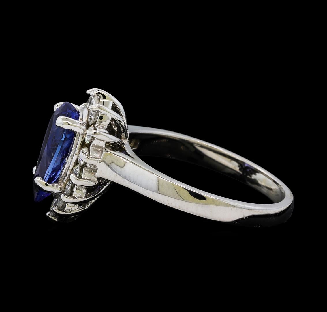 One Tanzanite and Diamond Ring including: 14KT White Gold weighing a total of 4.41 grams, Tanzanite weighing a total of 2.17ct, and 14 Diamonds weighing a total of 0.44ctw.