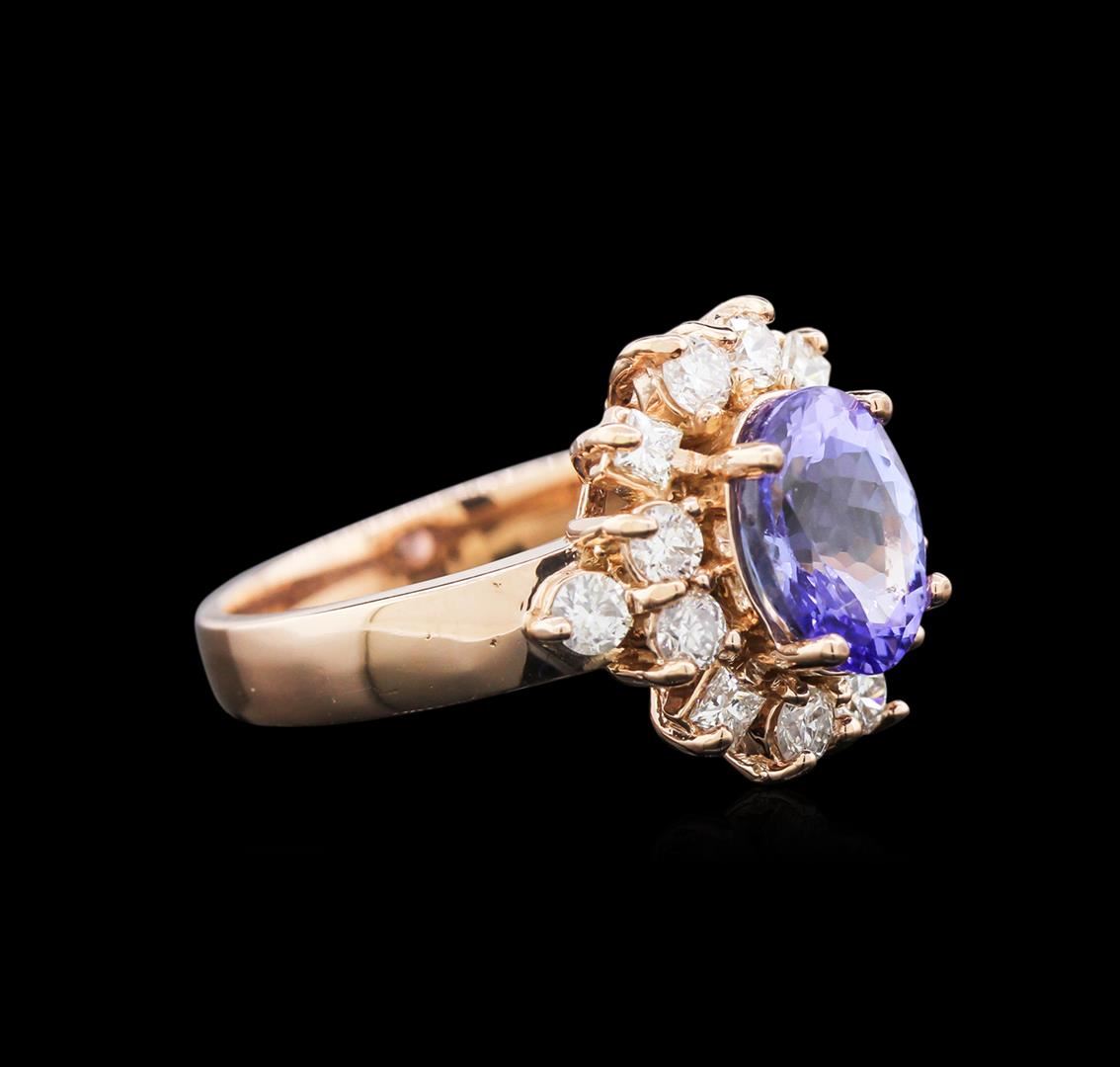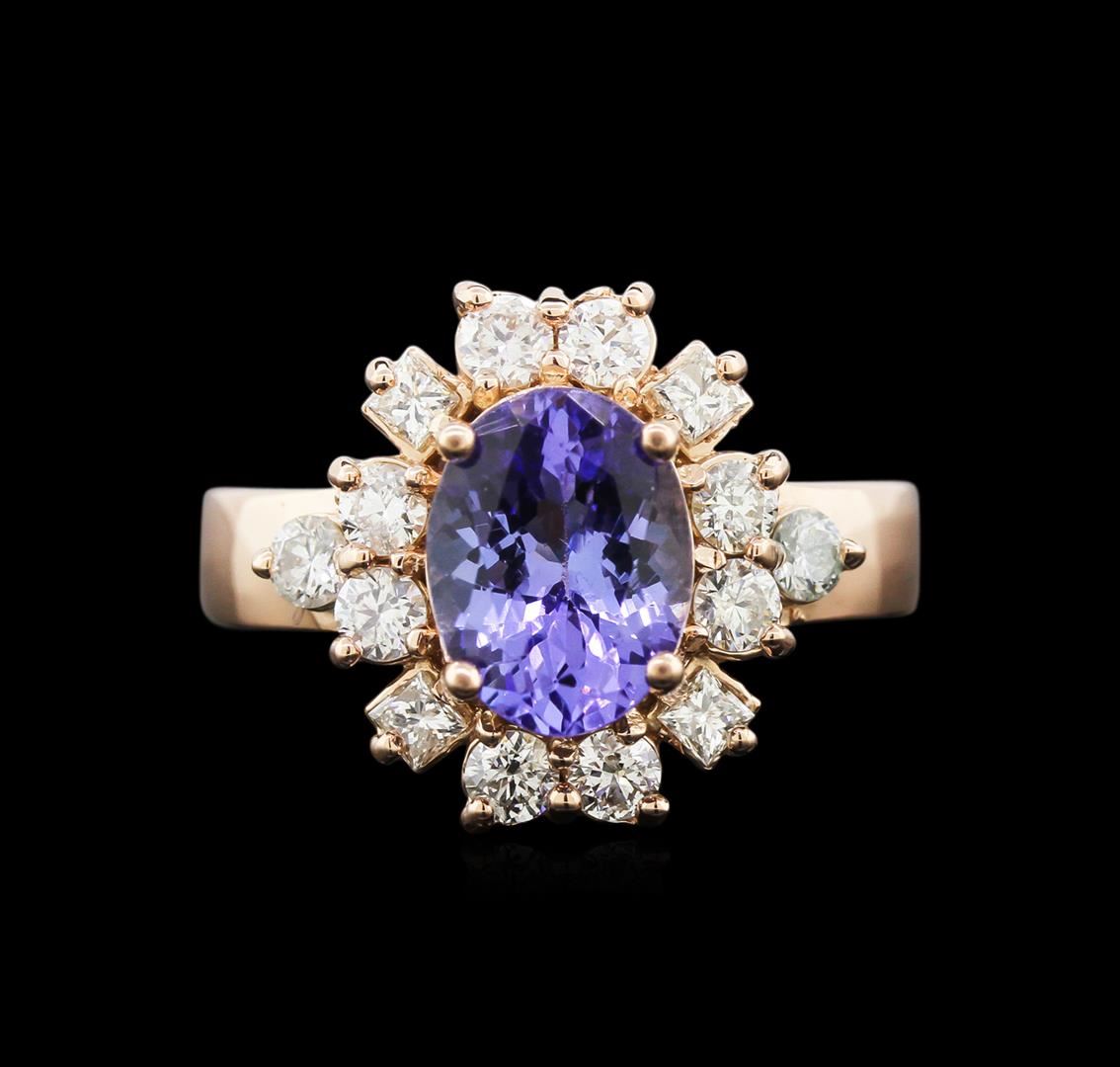 One ring featuring: 14KT rose gold weighing 4.80 grams containing one tanzanite center stone with a total weight of 2.08ct and 14 diamonds with a total weight of 0.80ct.