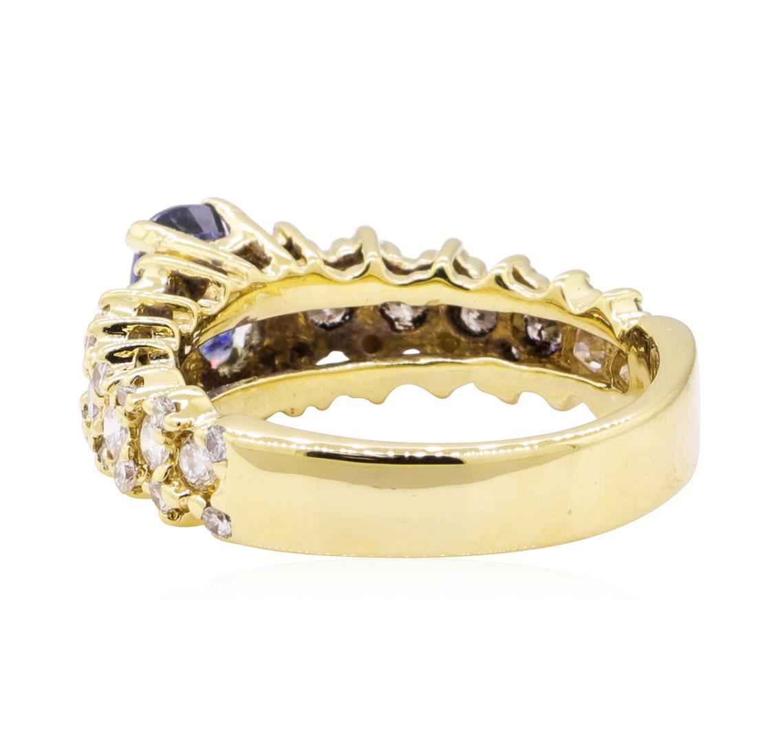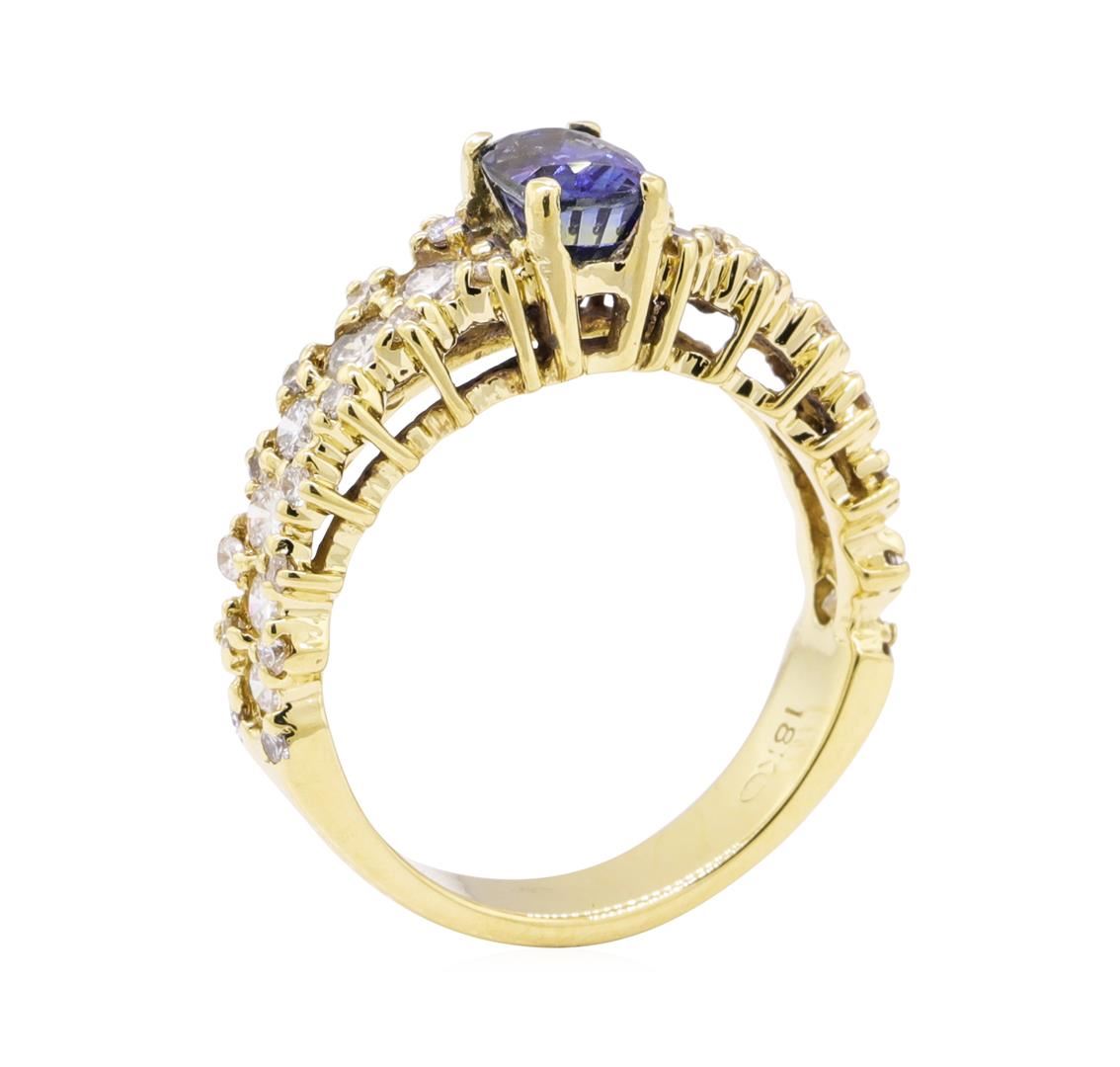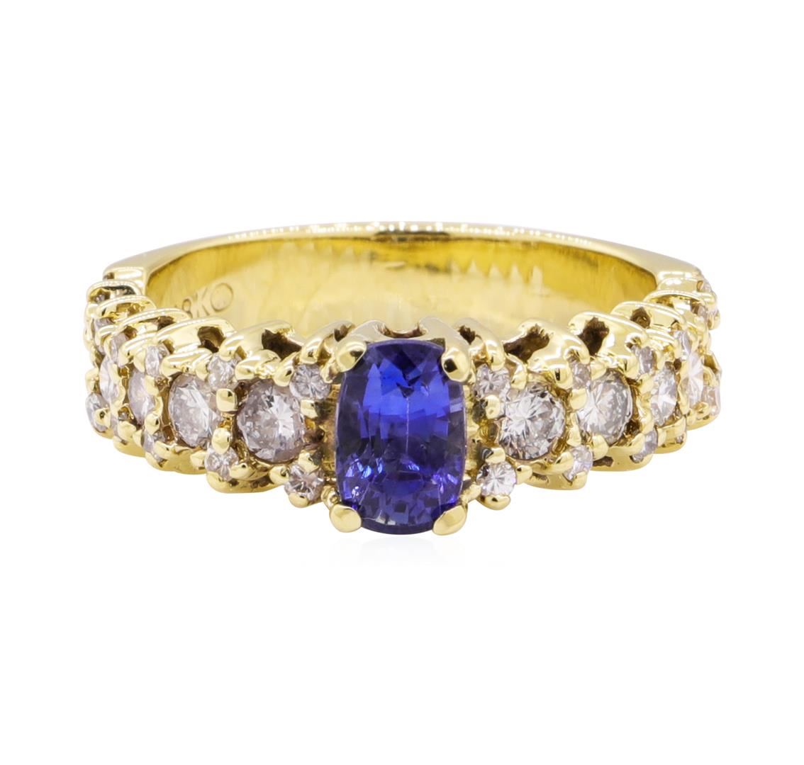 One electronically tested 18KT yellow gold lady's cast fashion ring with a straight line cathedral shank with a bright polish finish. The featured lady's ring has hand wire detailing and a shank measuring 4.10 millimeters wide. Identified with markings of