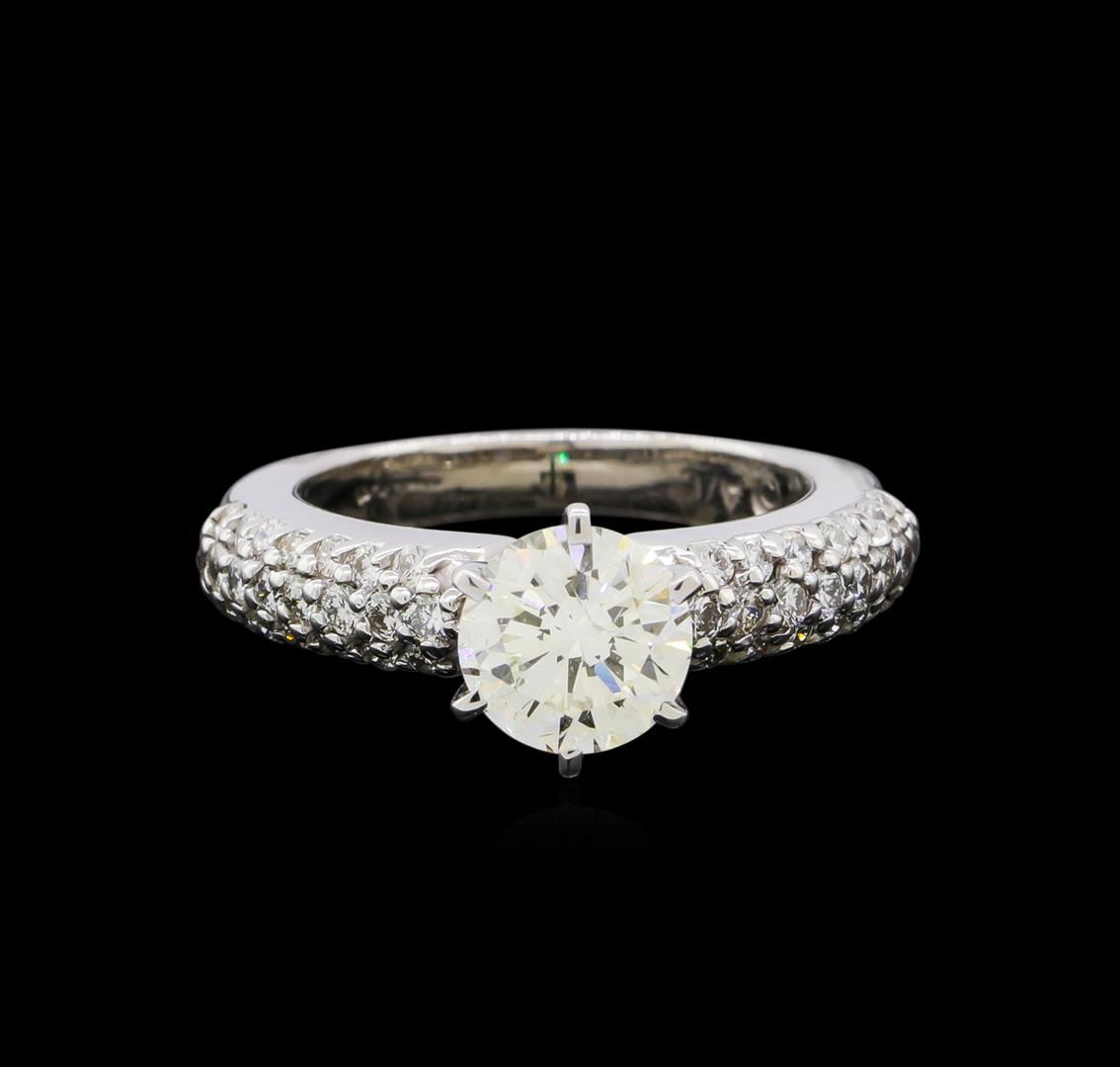 One 14KT white gold lady's engagement style ring weighing 5.55 grams containing one center diamond with SI clarity and H-I color weighing 1.20ct and adjacent diamonds with SI clarity and G-H color weighing 0.90ctw.