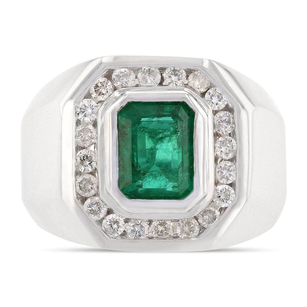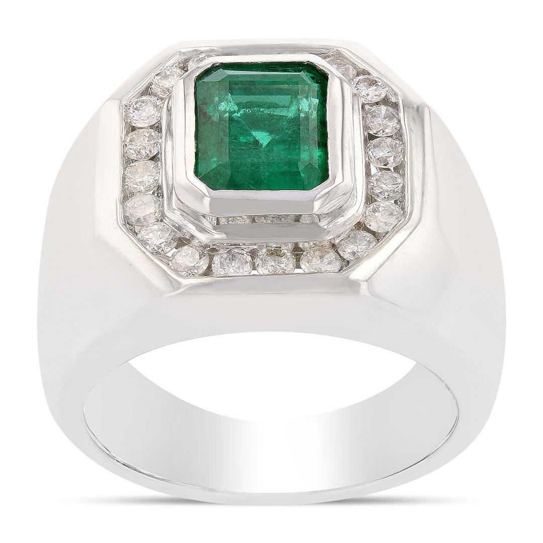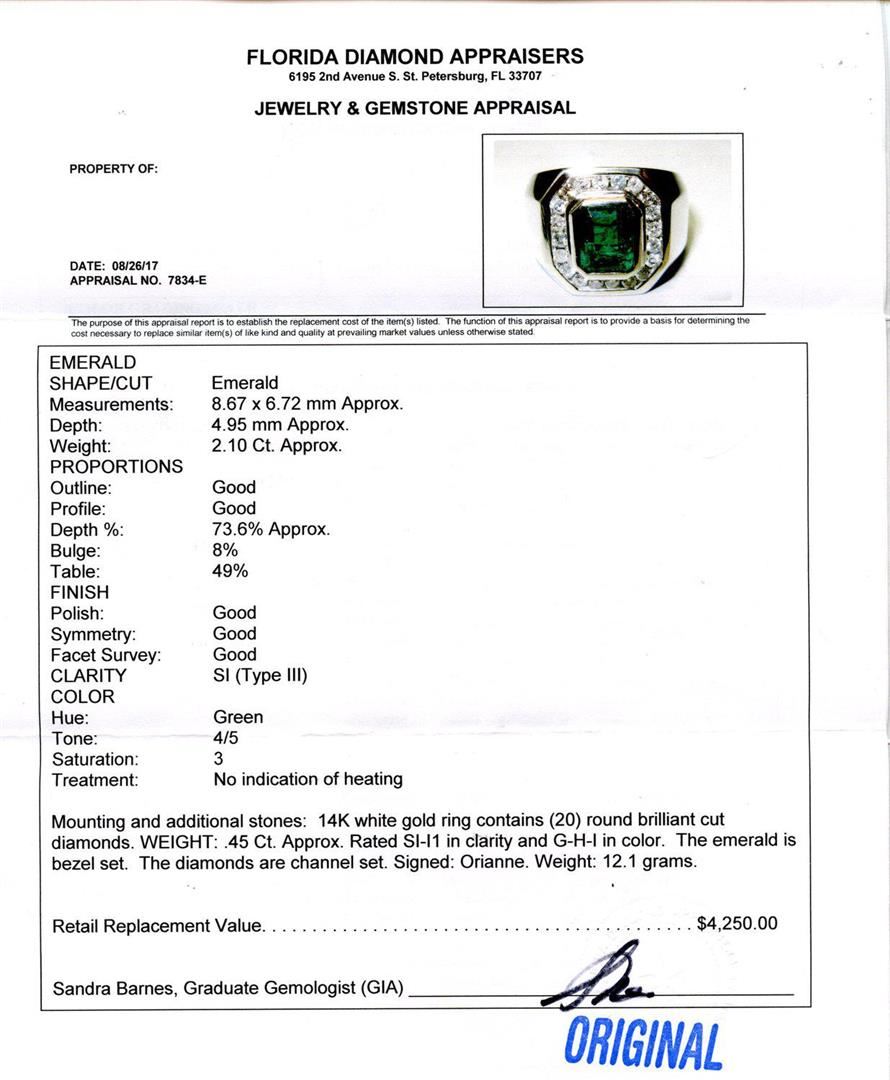 2.10 ctw Emerald and 0.45 ctw Diamond 14K White Gold Ring