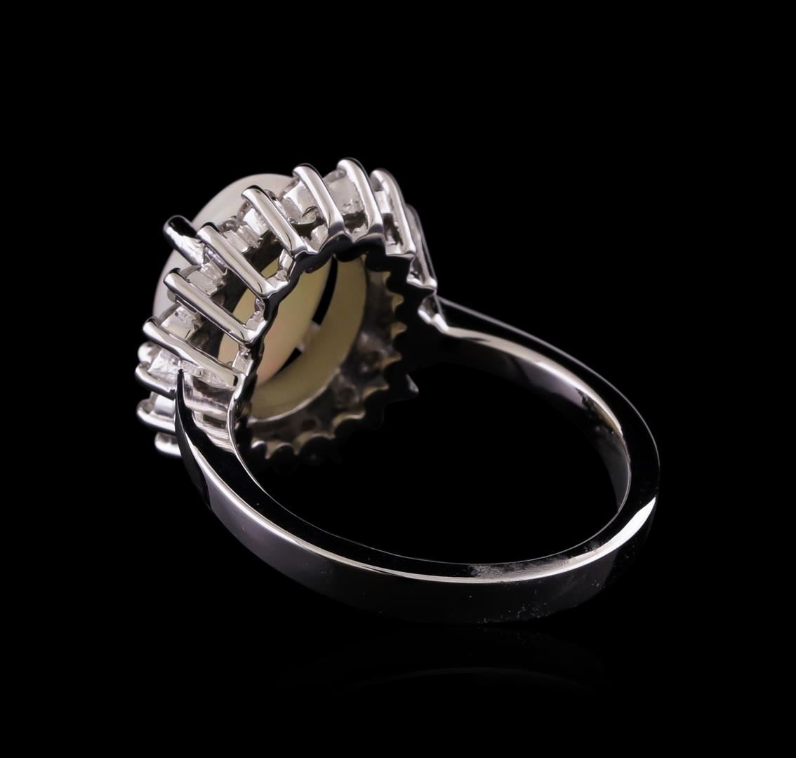 One ring : 14KT white gold weighing 5.56gm containing one opal center stone with a total weight of 2.10ct. and side diamonds weighing 0.60ctw.
