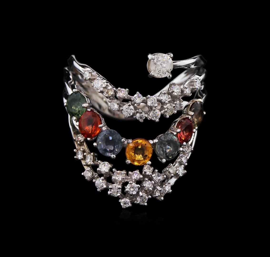 2.10ctw Multi Color Sapphire and Diamond Ring - 14KT White Gold