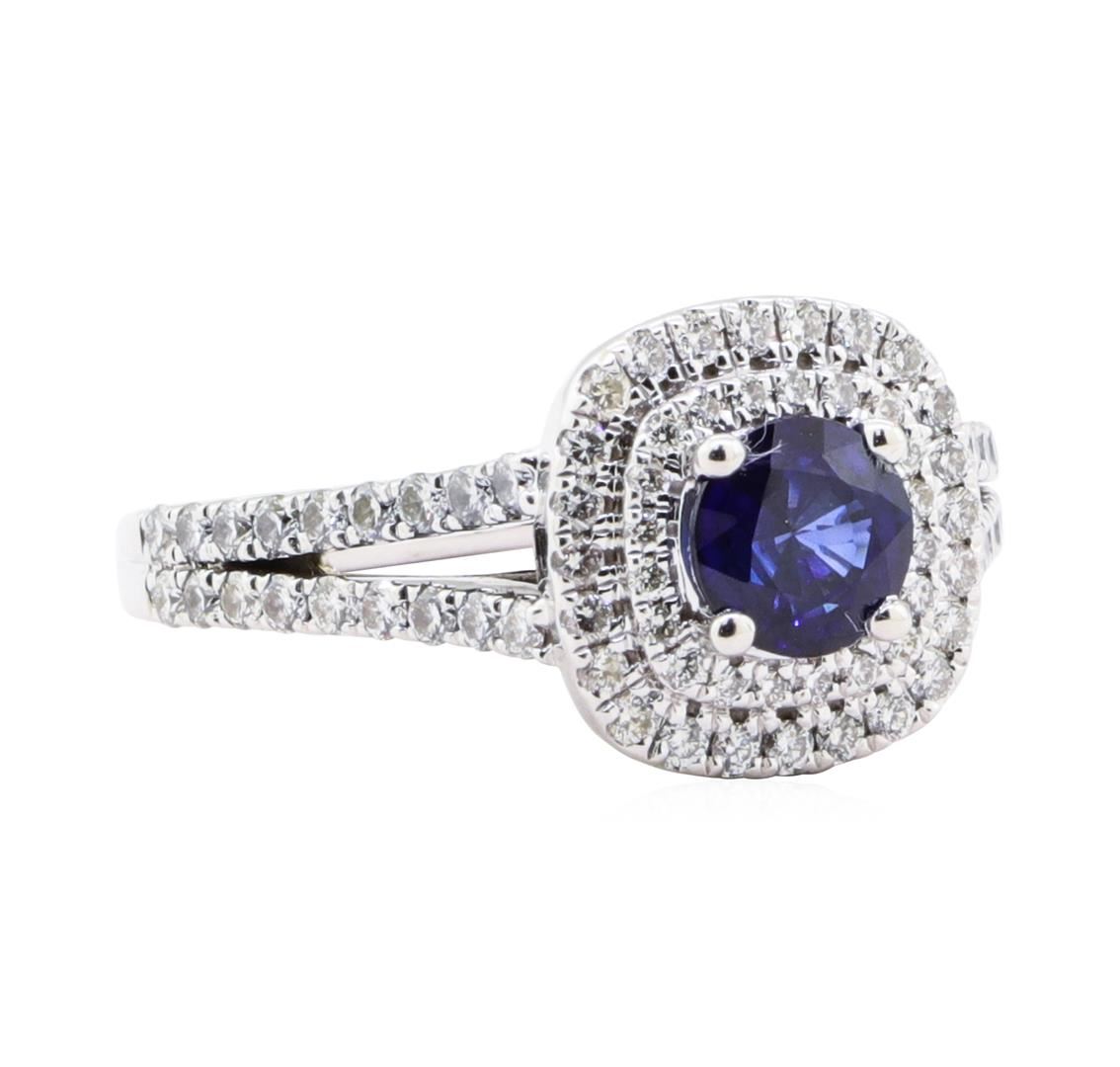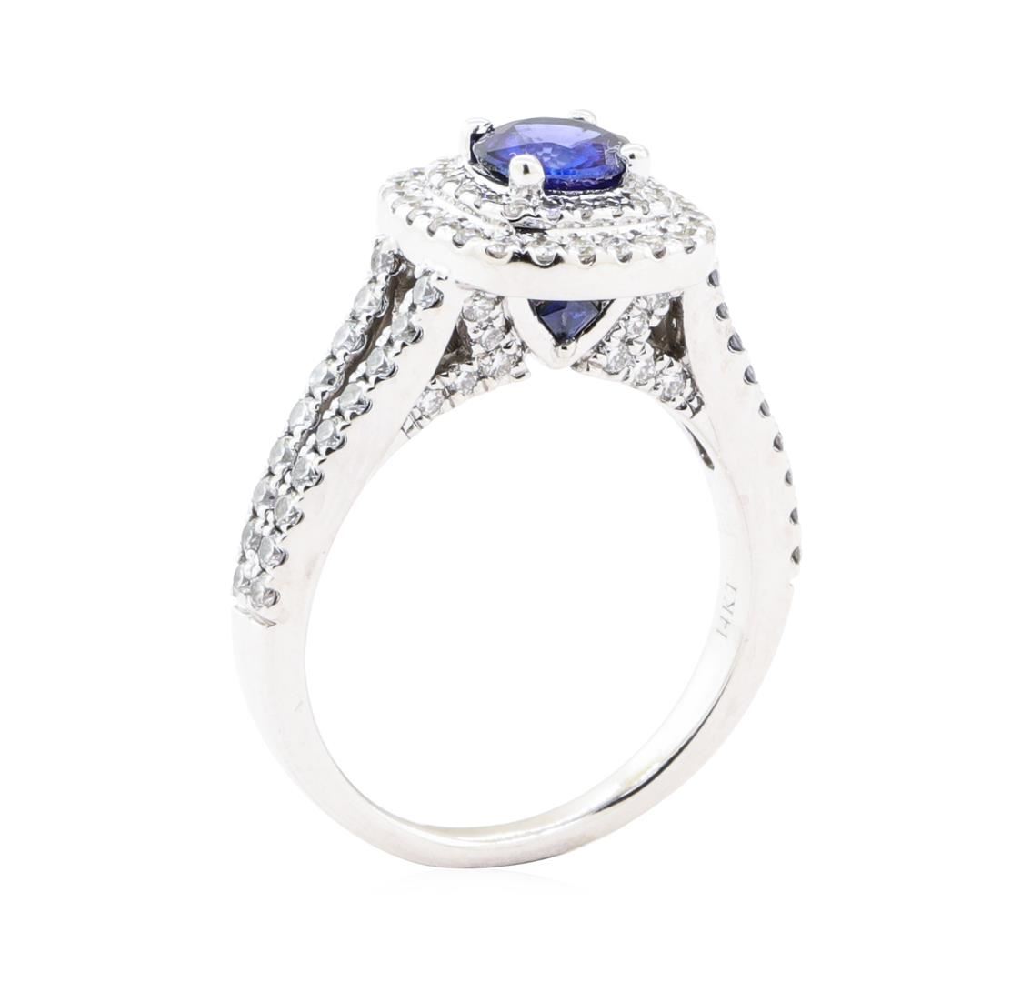 One electronically tested 14KT white gold lady's combination cast & assembled fashion designer ring with a cathedral double cushion halo with a bright polish finish. The featured lady's ring has a split shank measuring 2.00 millimeters wide. Trademark is