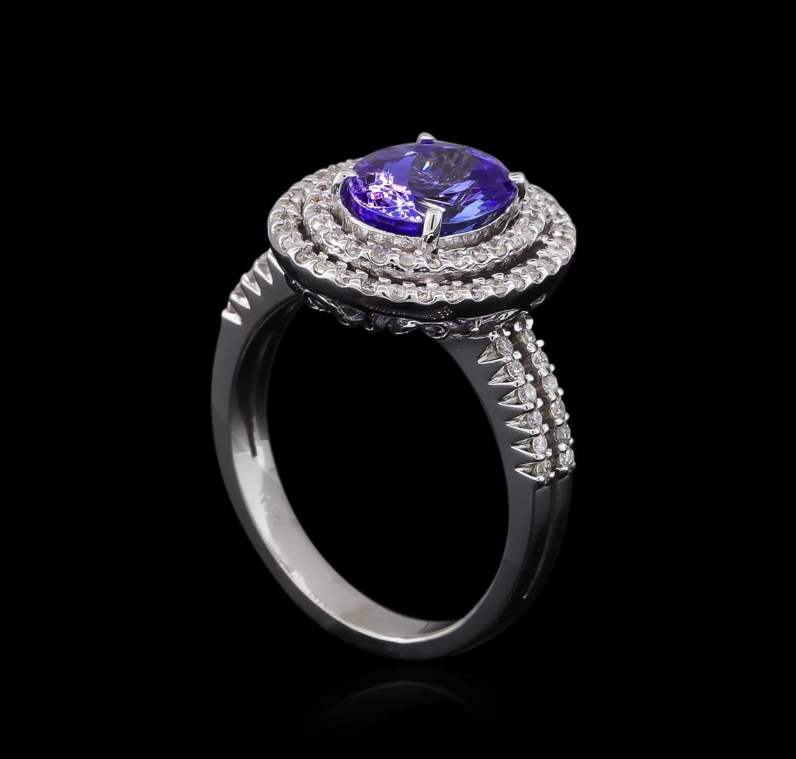 One ring featuring: 14KT white gold weighing 5.18 grams containing one tanzanite with a total weight of 2.11ct and side diamonds with a total weight of 0.57ct.