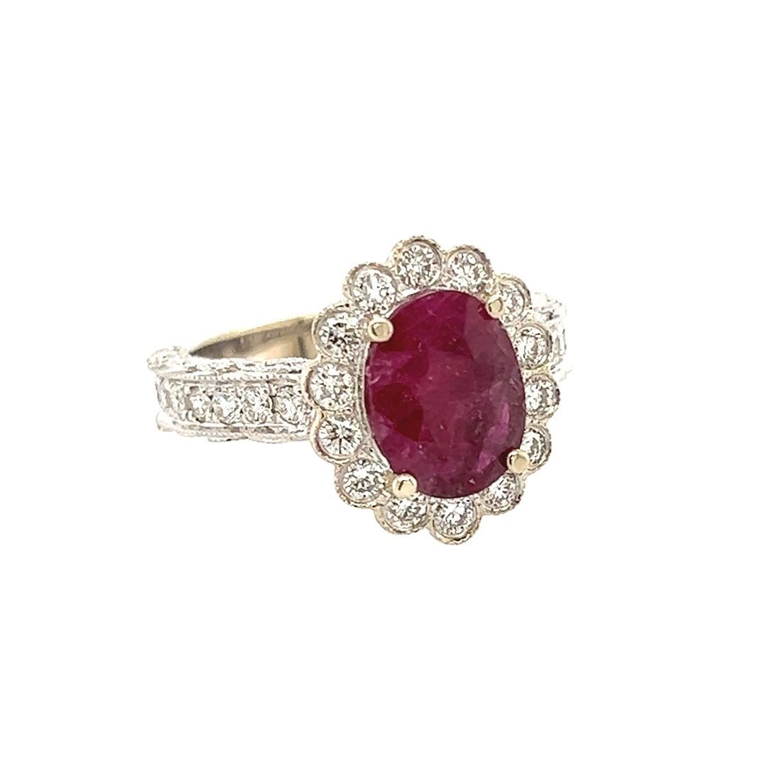 One electronically tested 14KT white gold lady's cast fashion ring with a basket halo with a bright polish with milgrain detailing finish. Condition is new, good workmanship. The featured lady's ring has a shank measuring 3.00 millimeters wide. Identified