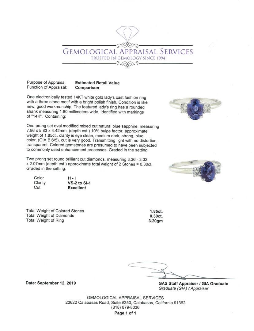 One electronically tested 14KT white gold lady's cast fashion ring with a three stone motif with a bright polish finish. The featured lady's ring has a rounded shank measuring 1.80 millimeters wide. Identified with markings of '14K'. Condition is Good. Co