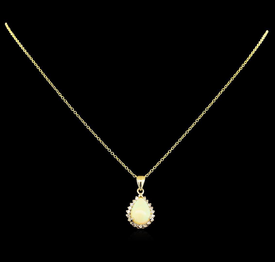 One pendant featuring: 14KT yellow gold weighing 2.90 grams containing one opal with a total weight of 2.15ct and diamonds with a total weight of 0.50ct.