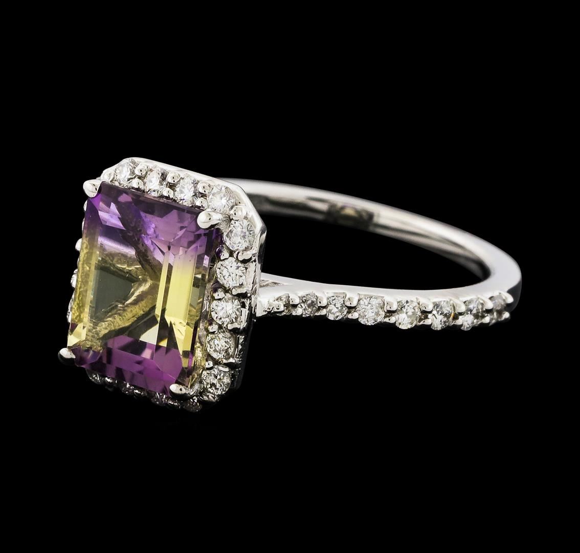 One Ametrine and Diamond Ring featuring: 14KT White Gold with a total weight of 3.82 grams, One Ametrine stone with a total weight of 2.17ct, and 34 Diamonds with a total weight of 0.44ctw.