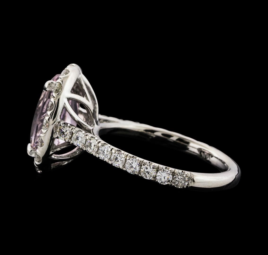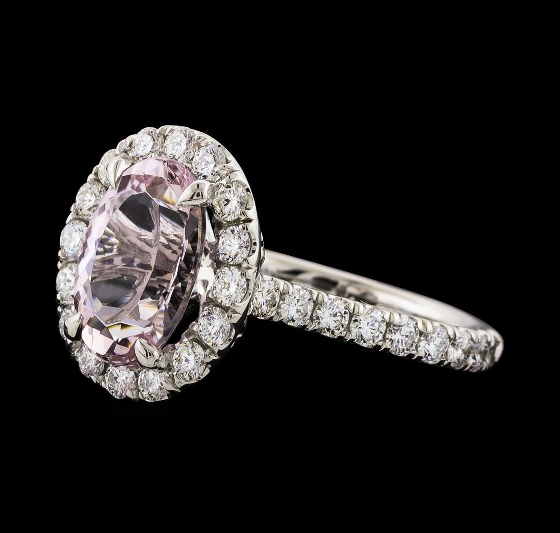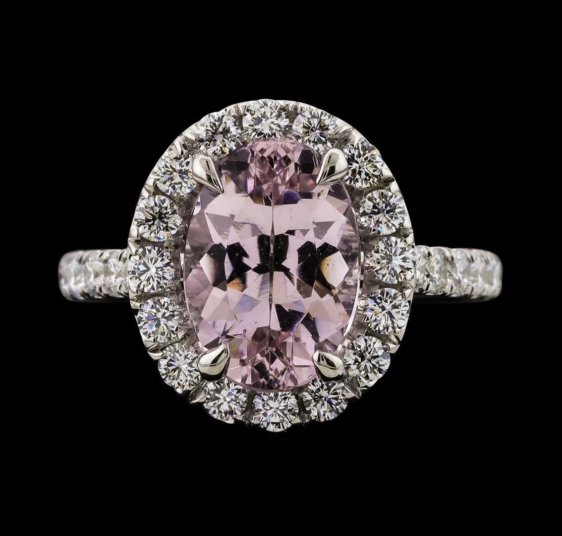 One Morganite and Diamond Ring featuring: 14KT White Gold with a total weight of 3.85 grams, Morganite with a total weight of 2.17ct, and side diamonds with a total weight of 1.00ctw.