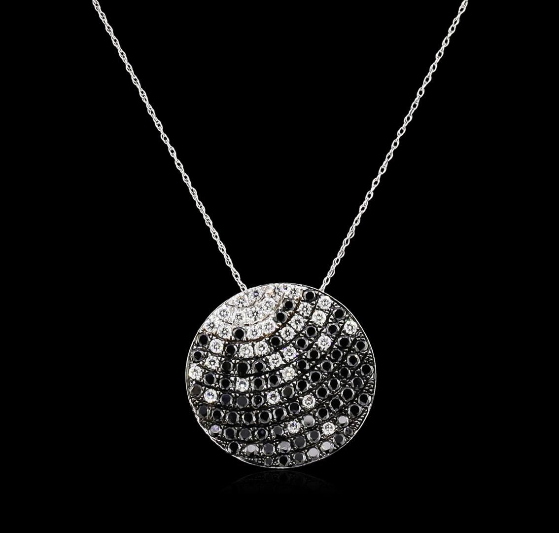 One pendant with chain featuring: 14KT white gold weighing 5.45 grams containing black diamonds with a total weight of 1.55ct and white diamonds with a total weight of 0.62ct.