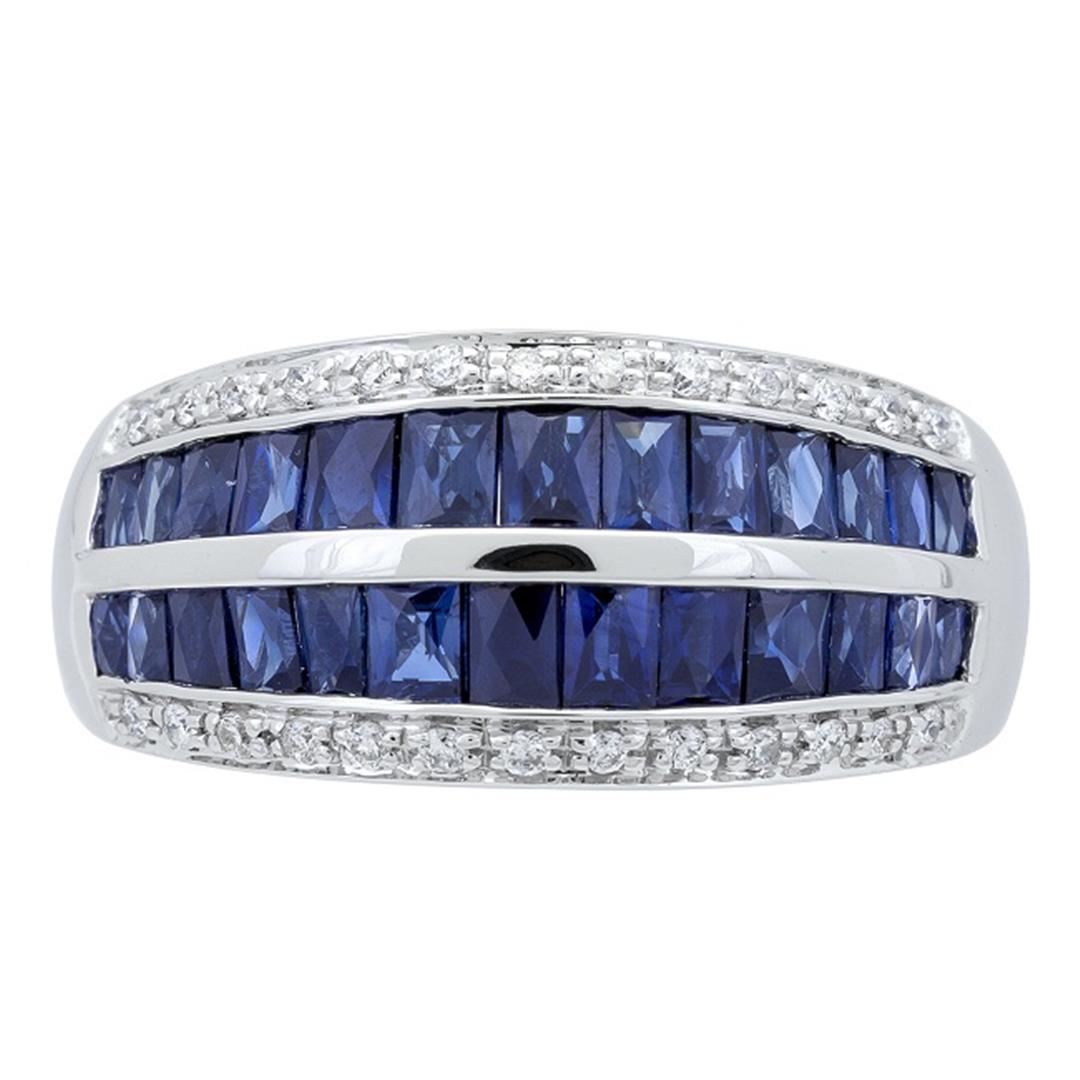 One Ring : 14KT white gold weighing 4.63gm containing 26 blue sapphire stones with a total weight of 2.18ctw and side diamonds weighing 0.14ctw.
