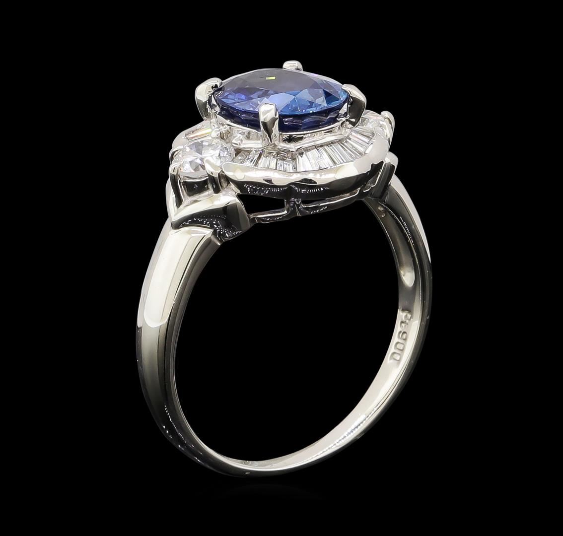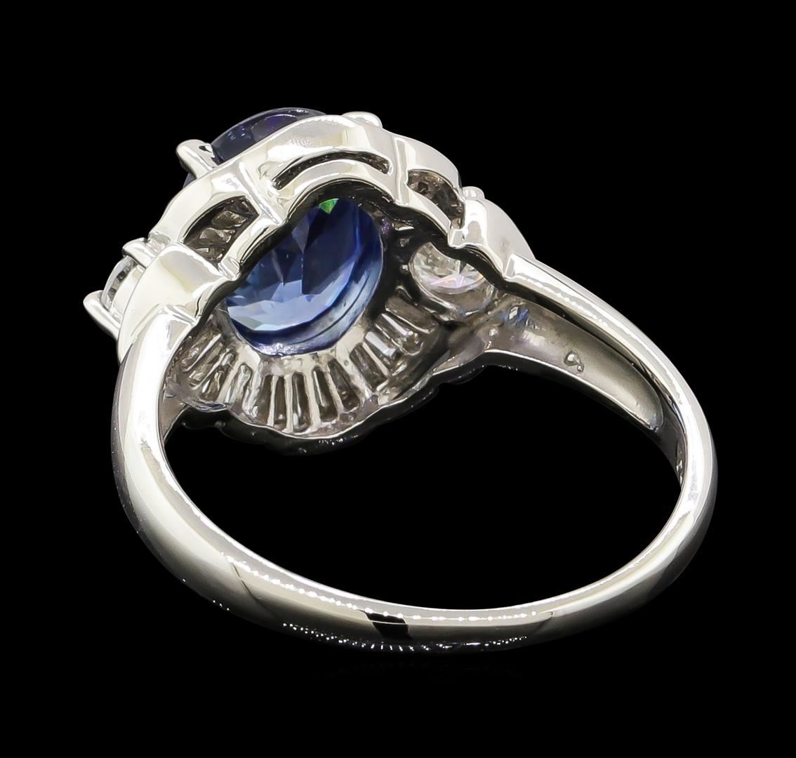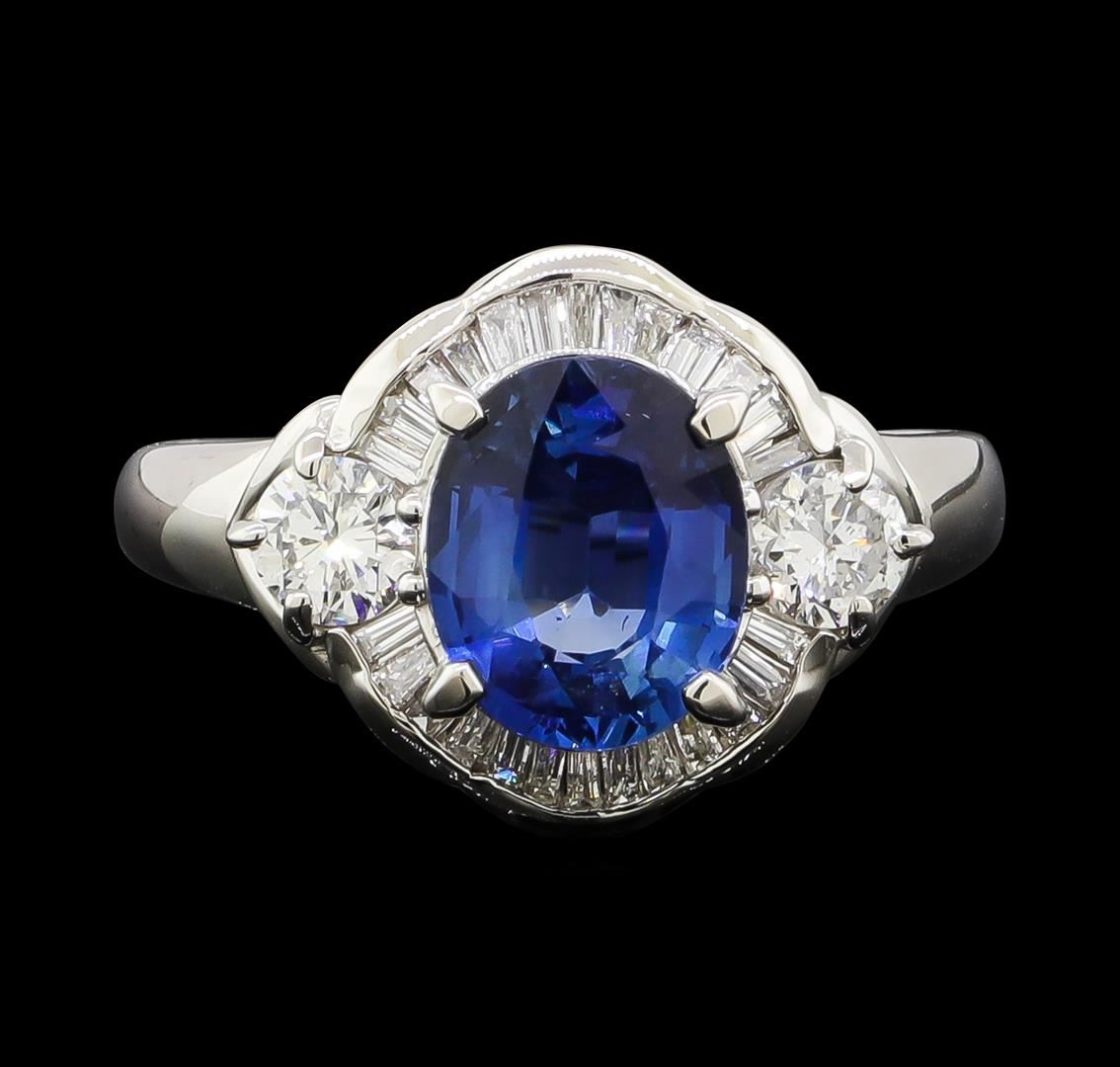 One ring featuring: Platinum containing Sapphire with a total weight of 2.20ct and Diamonds with a total weight of 0.73ct. Total Weight of Ring: 6.2 grams.