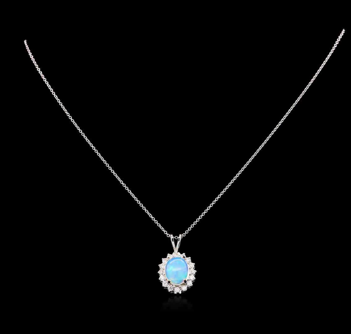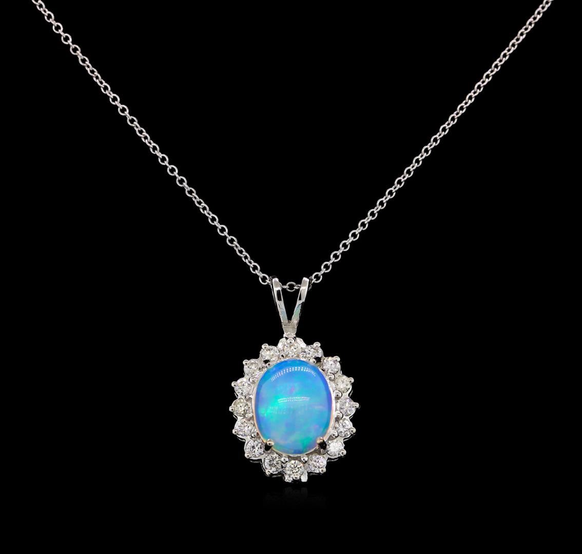 One pendant featuring: 14KT white gold weighing 2.40 grams containing one opal with a total weight of 2.22ct and side diamonds with a total weight of 0.50ct.