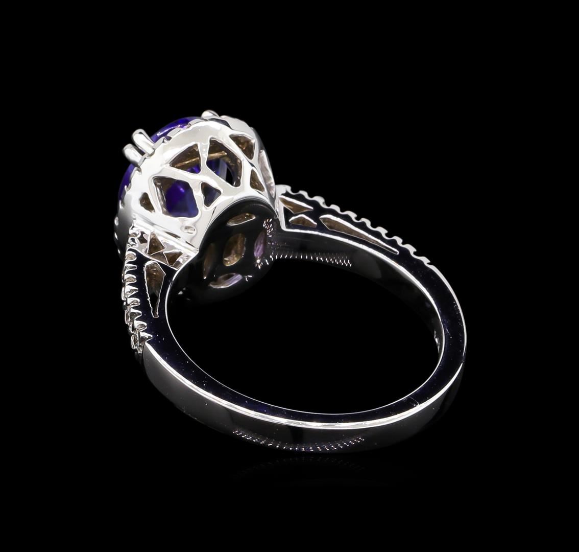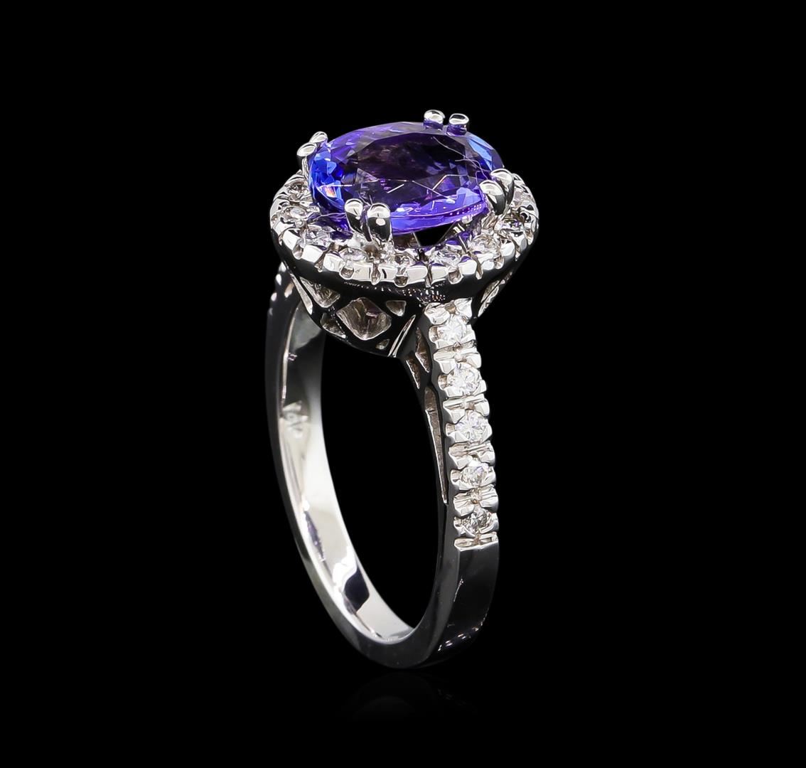 One ring featuring: 14KT white gold weighing 5.21 grams containing one tanzanite with a total weight of 2.23ct and side diamonds with a total weight of 0.35ct.