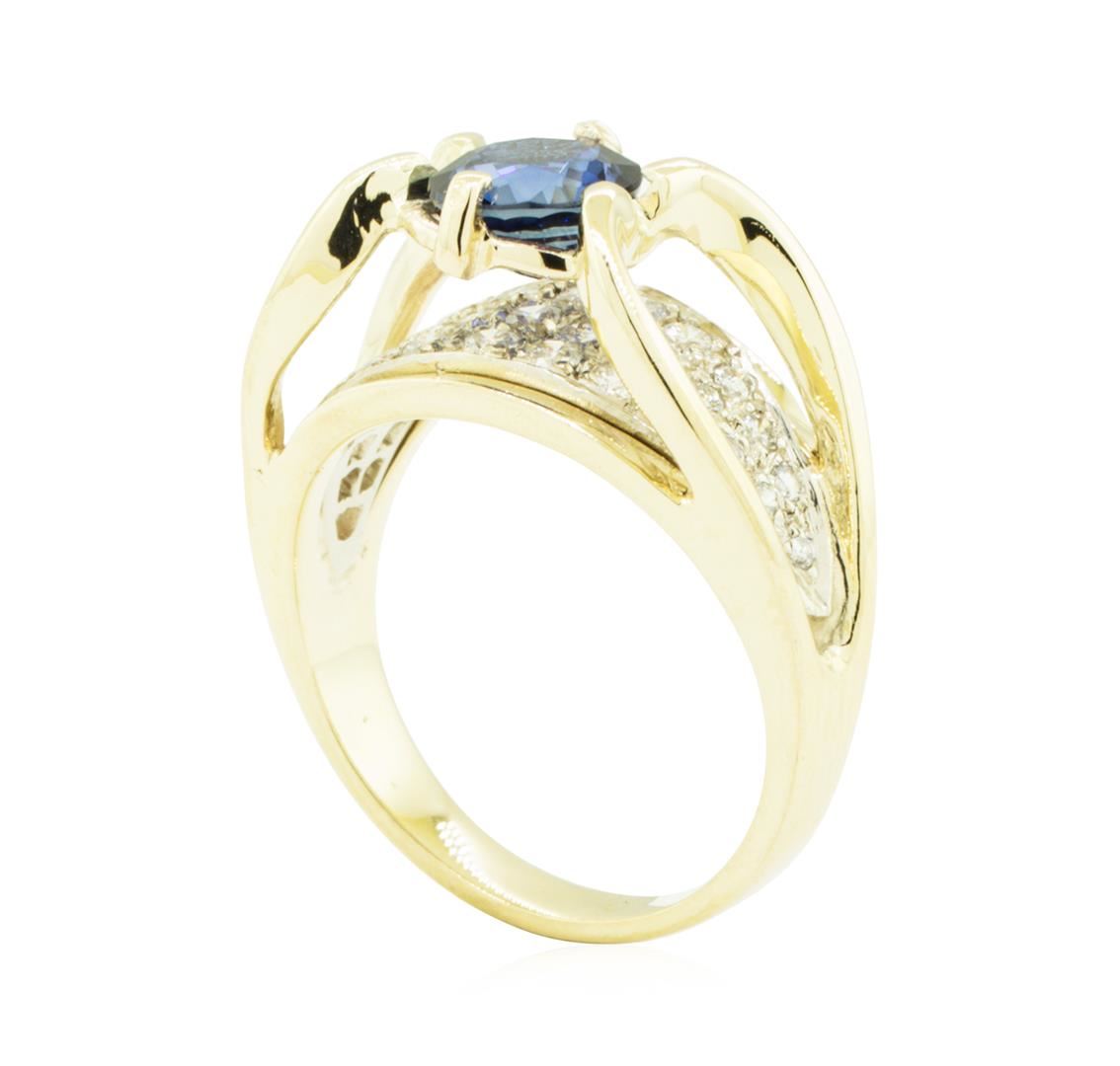 One electronically tested 14KT yellow and white gold lady's combination cast & assembled fashion ring with a cathedrail scalloped shank with a bright polish finish. The featured lady's ring has a shank measuring 2.80 millimeters in width. Identified with