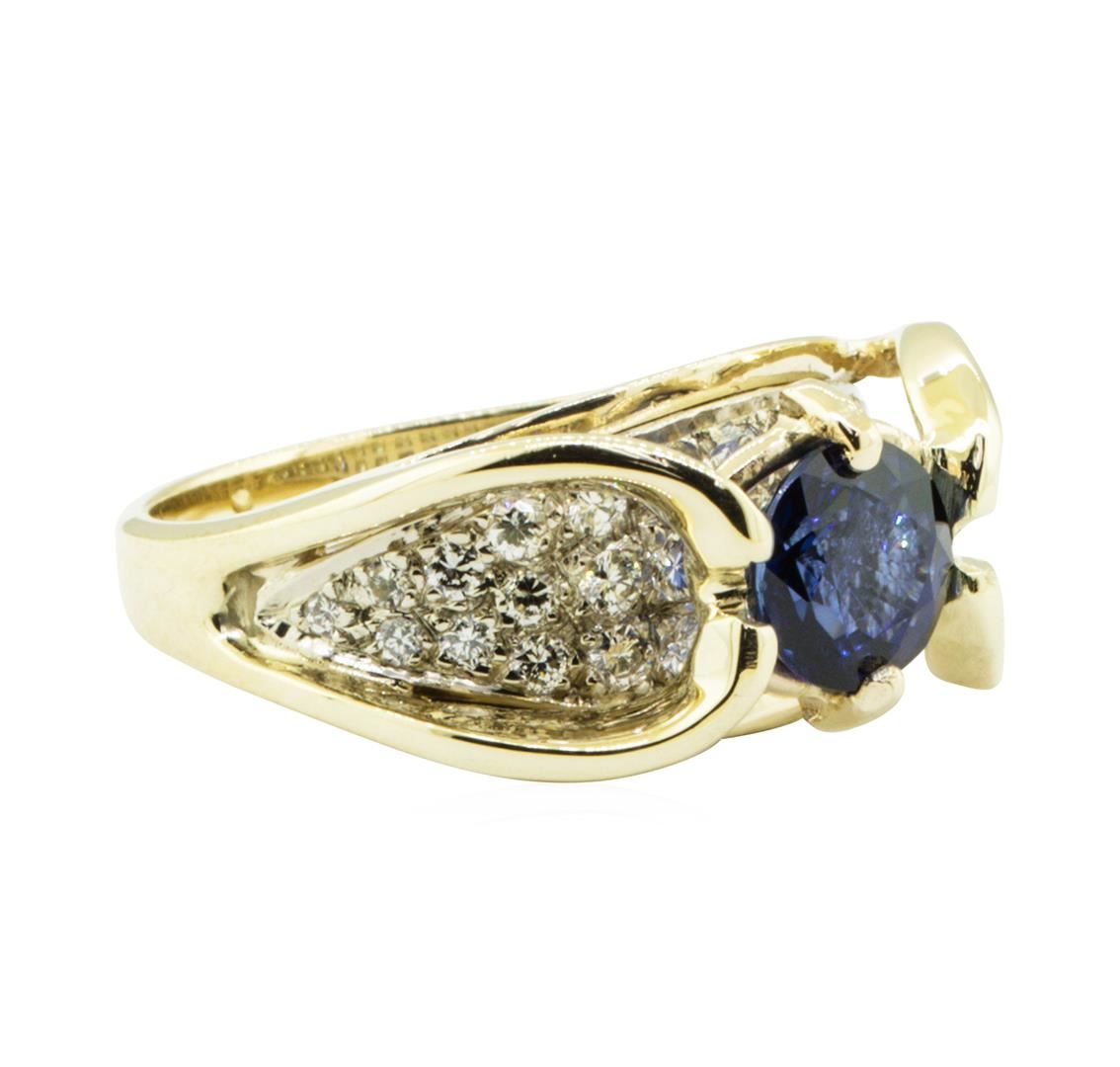 One electronically tested 14KT yellow and white gold lady's combination cast & assembled fashion ring with a cathedrail scalloped shank with a bright polish finish. The featured lady's ring has a shank measuring 2.80 millimeters in width. Identified with