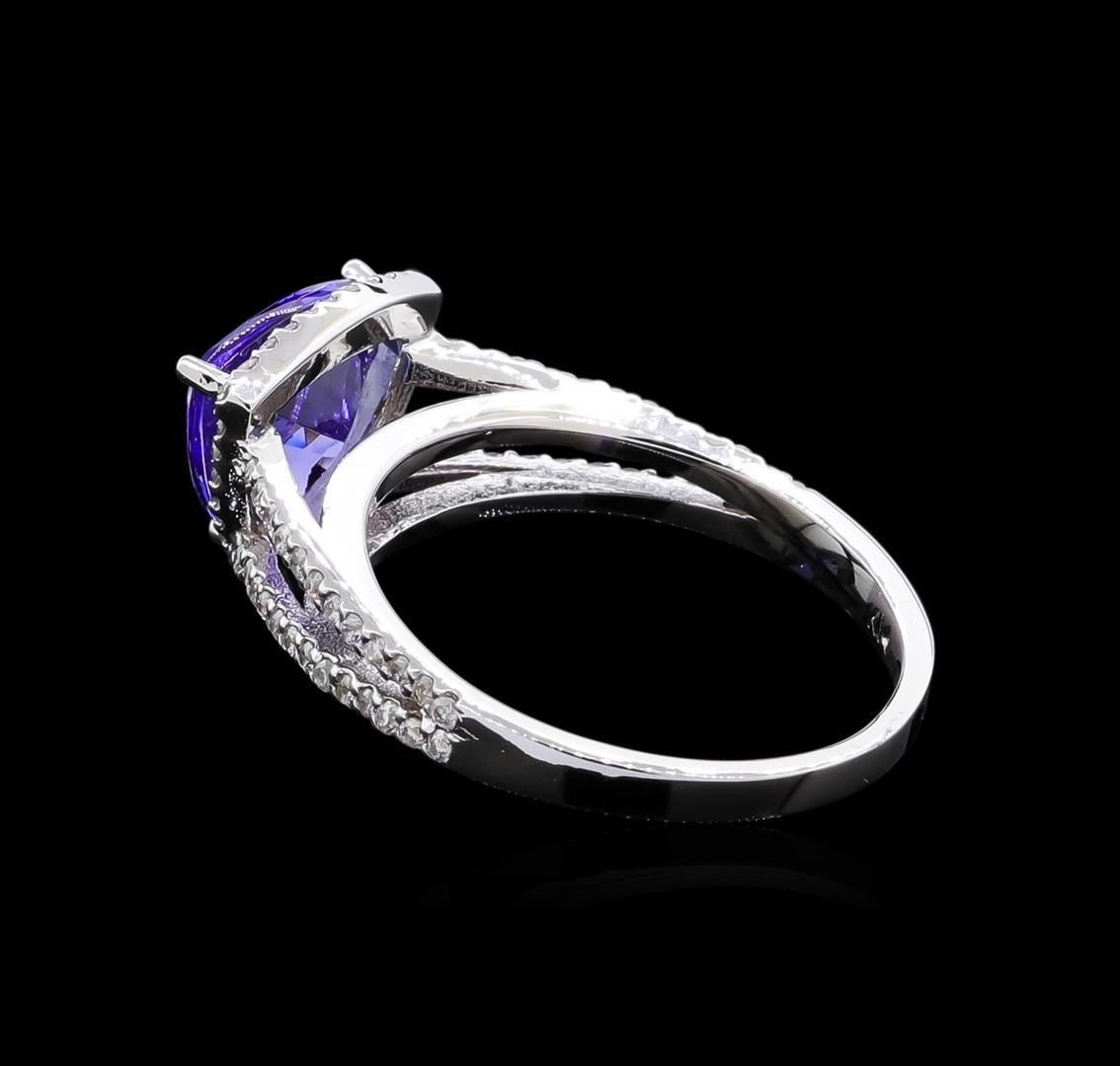 One ring featuring: 14KT white gold weighing 3.25 grams containing one tanzanite with a total weight of 2.24ct and side diamonds with a total weight of 0.40ct.