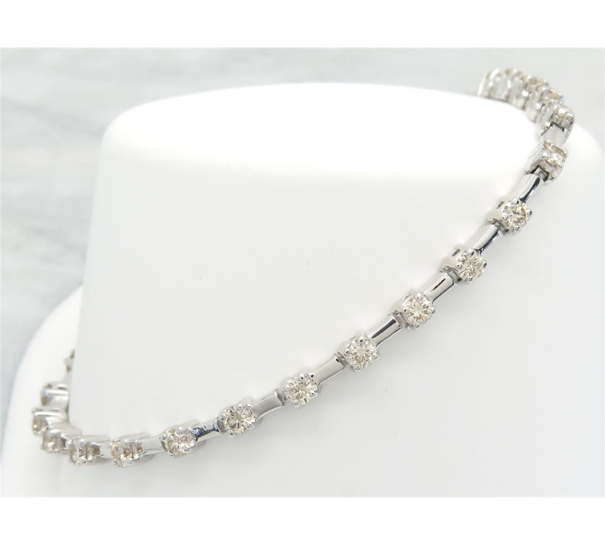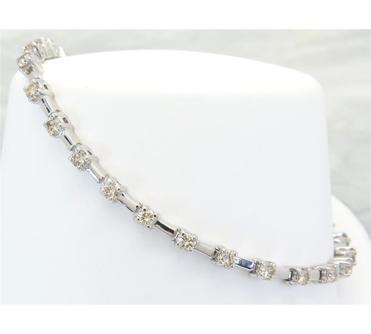 One tested 14K white gold diamond bracelet. Containing: 25 Round Brilliant Cut Diamonds. Clarity: SI, Color: G-I. Approximate total diamond weight: 2.25CTW. All diamonds are graded in the mounting unless otherwise stated. Weight of bracelet: 11.3 grams, Size: 7 inches long.