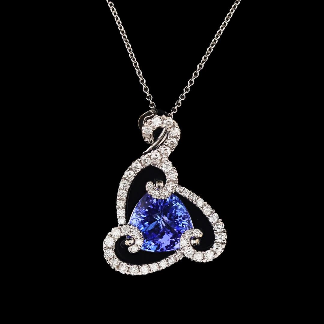 2.27ct Tanzanite and 0.36ctw Diamond 14K White Gold Pendant/Necklace. Please see Photos and Description for all available information. A beautiful blue gemstone and diamond combination, this pendant and necklace set is made of 14K white gold. It features a 2.27ct Tanzanite Pendant, 0.36ctw Brilliant Cut Diamonds and a 14K white gold chain. This necklace is the perfect gift for a loved one.